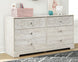 Commode Paxberry à six tiroirs, revêtue de vinyle, finition blanchie.