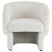 Take a seat in ultra cozy armchair and let it hug you with its softness. The round contoured shape adds to the inviting comfort factor of this chair. Soft, boucle fabric upholstery covers the entirety of this oversized accent chair. Can work well in any space as a an accent chair or for more formal seating in the living room.