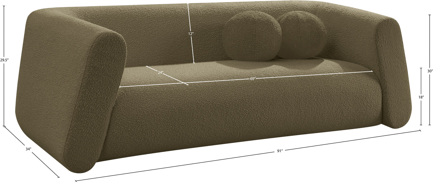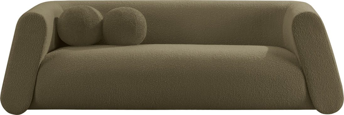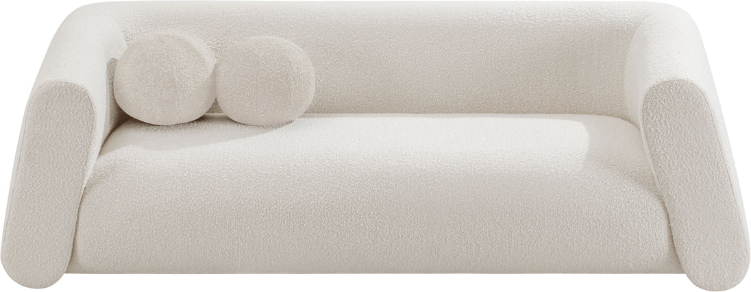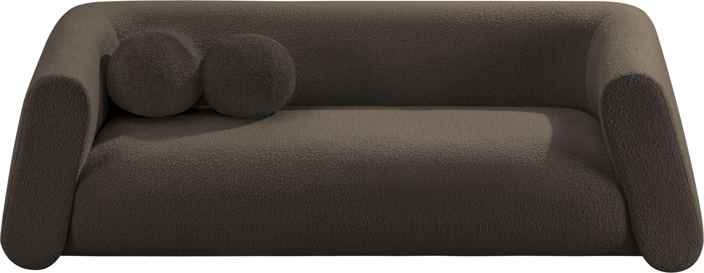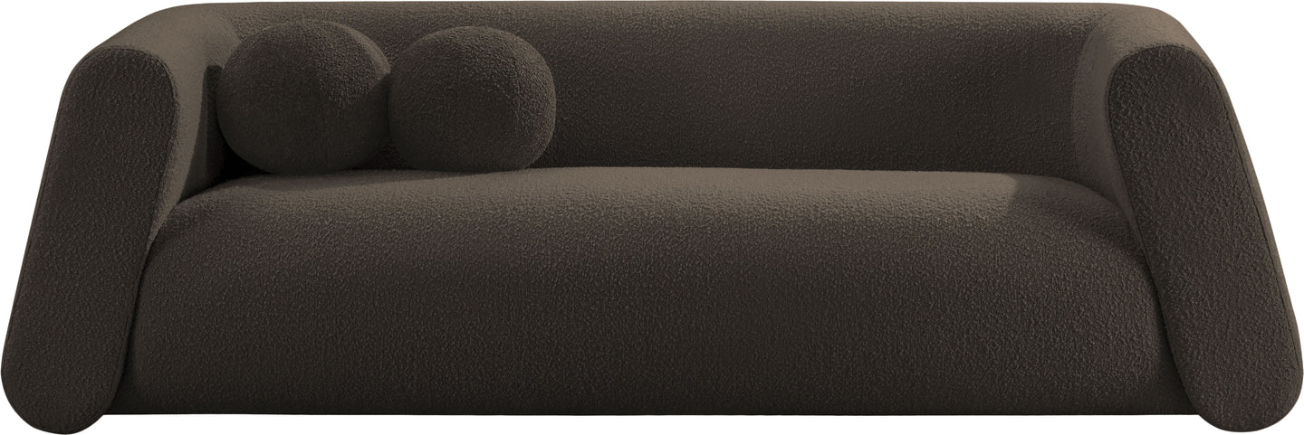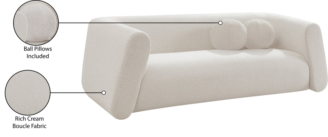Give your room a new look with the chic Abbington sofa in stunning boucle fabric. Embrace the richness of its texture and the boxy, geometrically inspired design that adds a touch of contemporary flair. This sofa is not just furniture; it's an aesthetic experience. Complete with an included ball pillow, the Abbington sofa is a sophisticated choice, promising both comfort and style for your living space. Redefine elegance with this eye-catching addition to your home from an unparalleled collection that lets you mix and match to suit your style preferences.