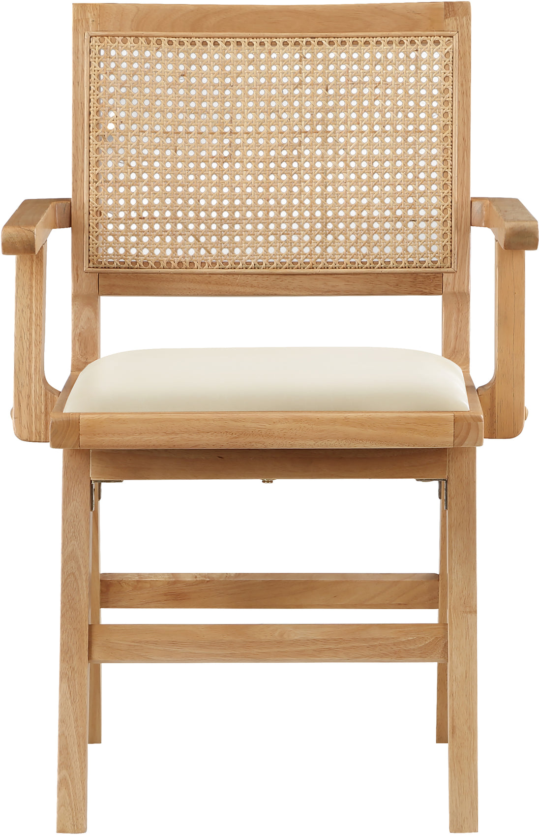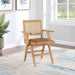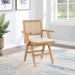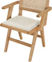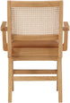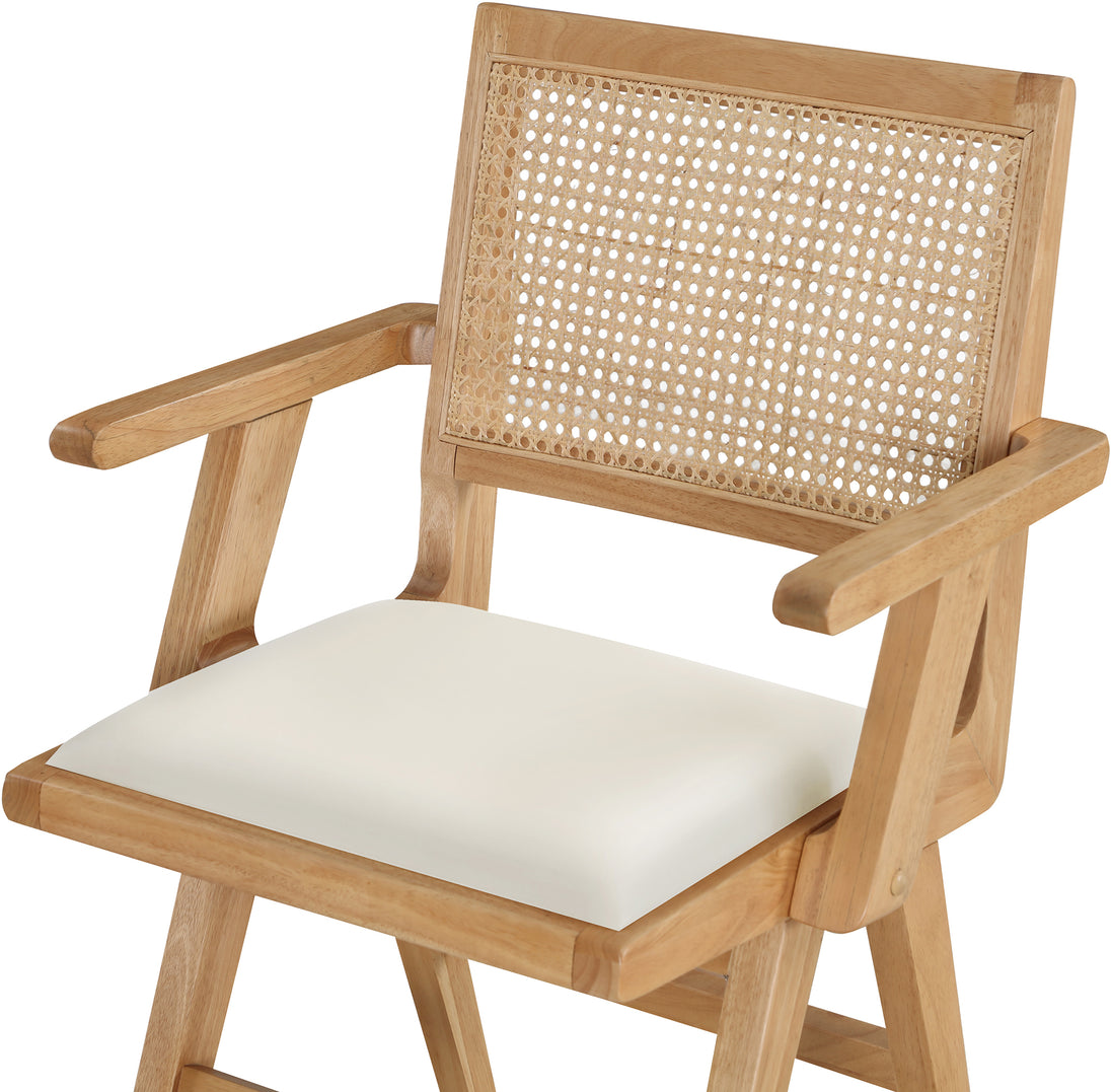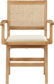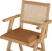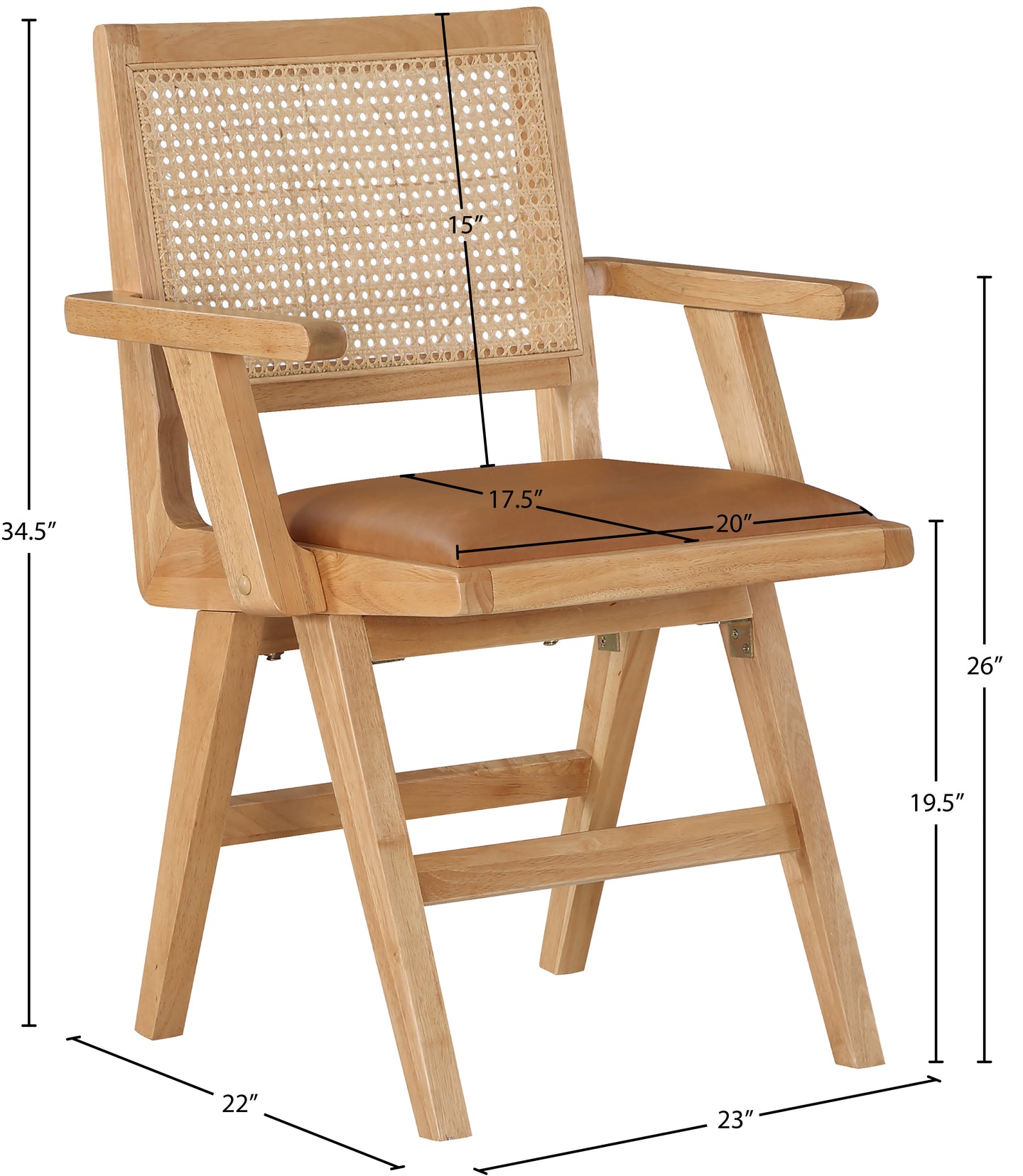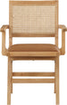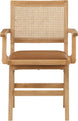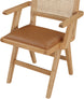Sit back and relax in this armchair from Meridian Furniture's Abby collection. Featuring a frame crafted from solid wood with a natural finish and a cognac vegan leather seat, this chair is both sturdy and durable so it will last you for years to come. A natural cane backrest seamlessly blends with the chair's natural-finished frame, adding a sense of warmth and charm that ensures it will stand out among all your furniture.