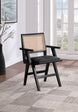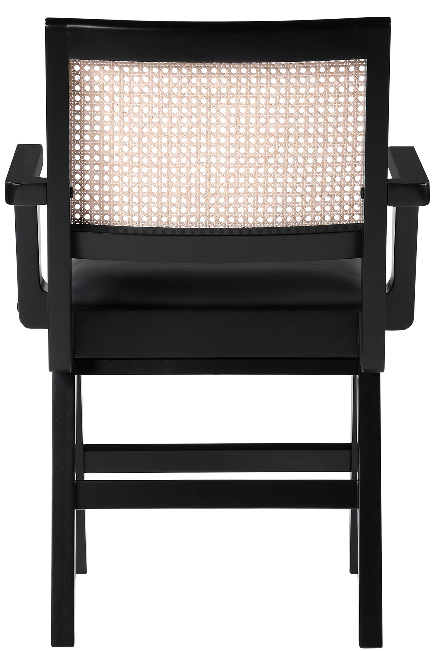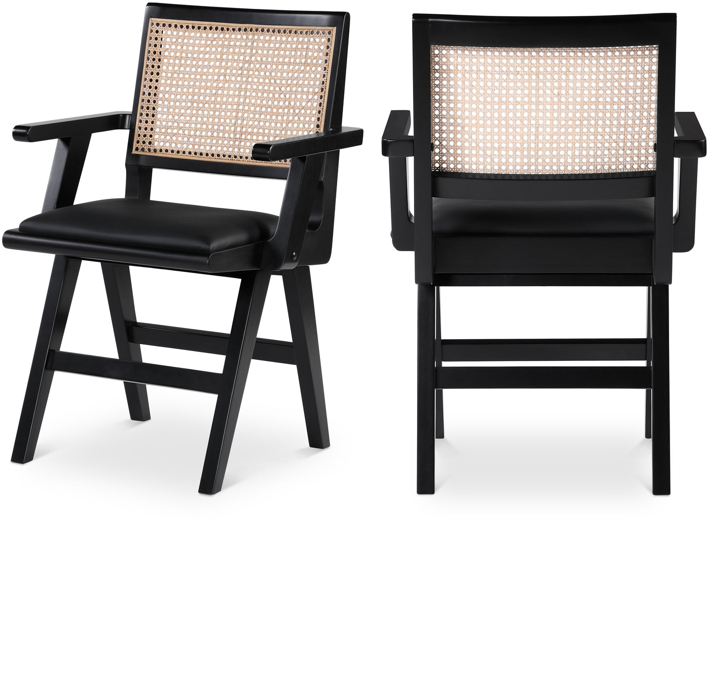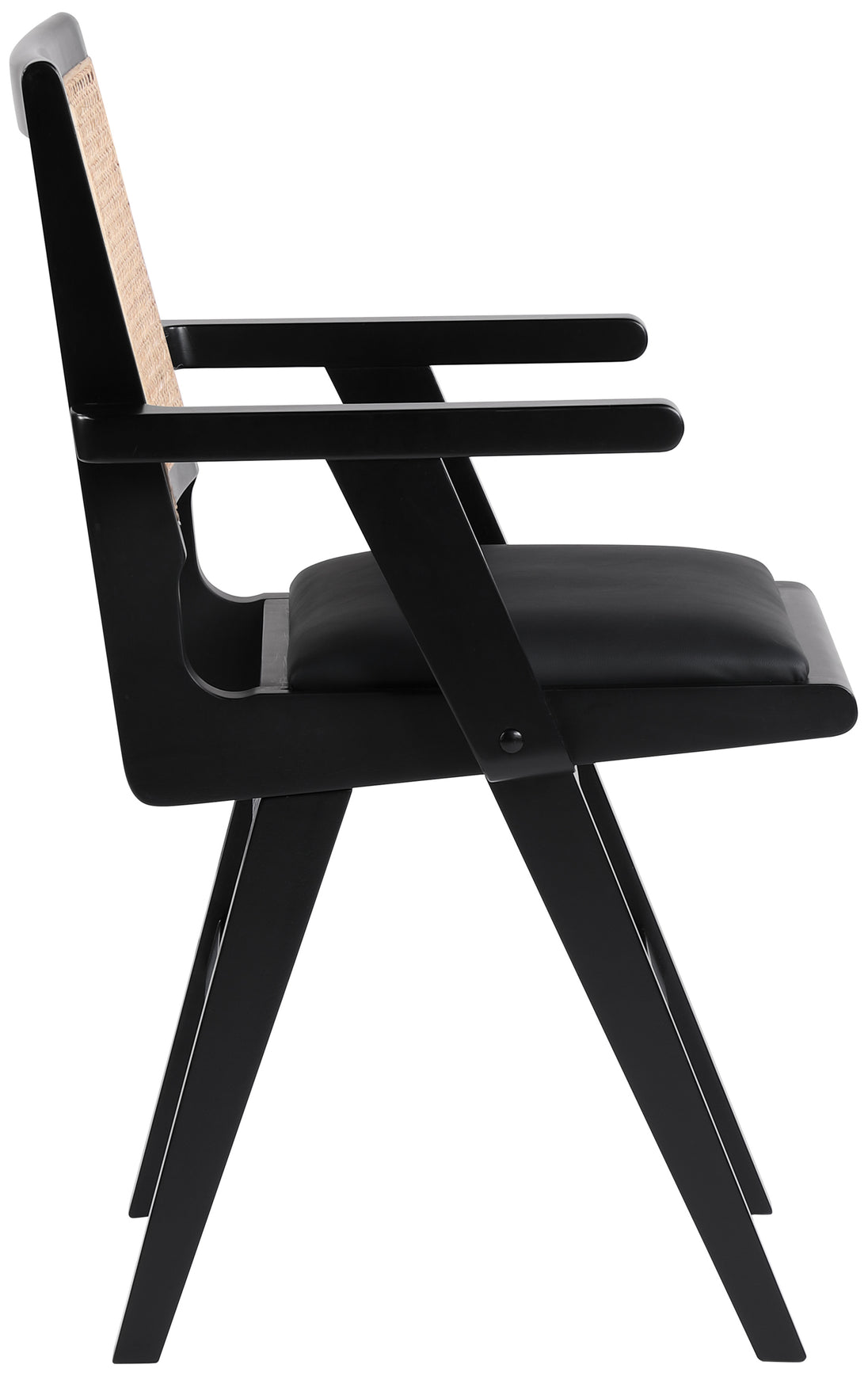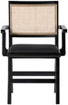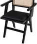 Sit back and relax in this arm chair from Meridian Furniture's Abby collection. Featuring a frame crafted from solid mango wood with a black finish and black vegan leather seat, this chair is both sturdy and durable so it will last you for years to come. A natural cane back rest provides a pop of color that contrasts well with the chair's black frame, ensuring that it will stand out among all your furniture.