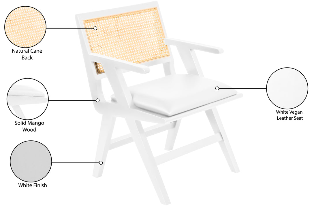 - Material: Vegan Leather / Mango Wood / Natural Cane / Foam
