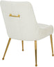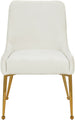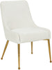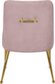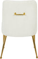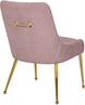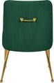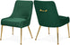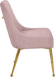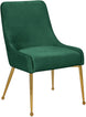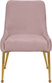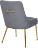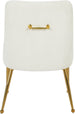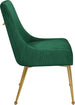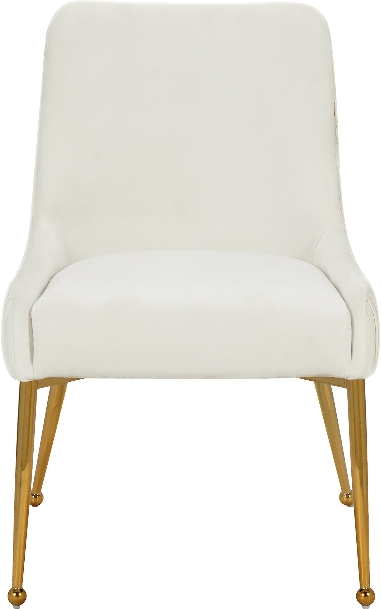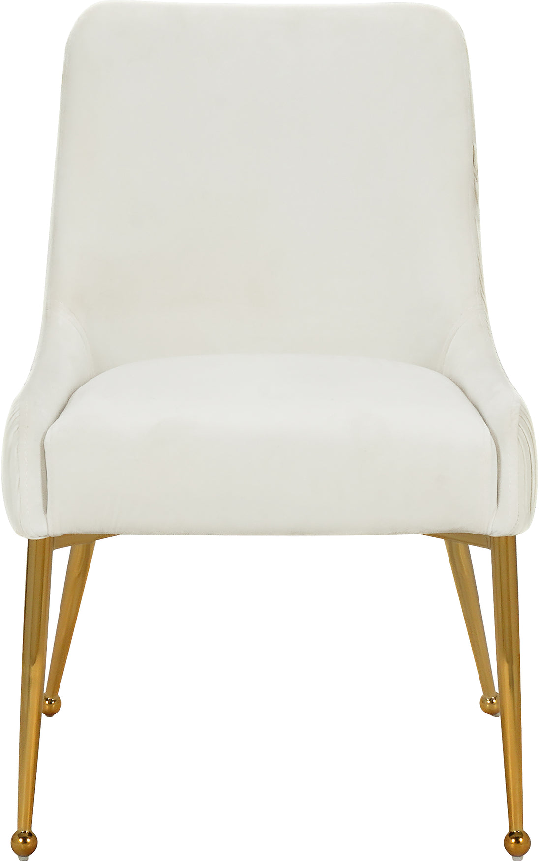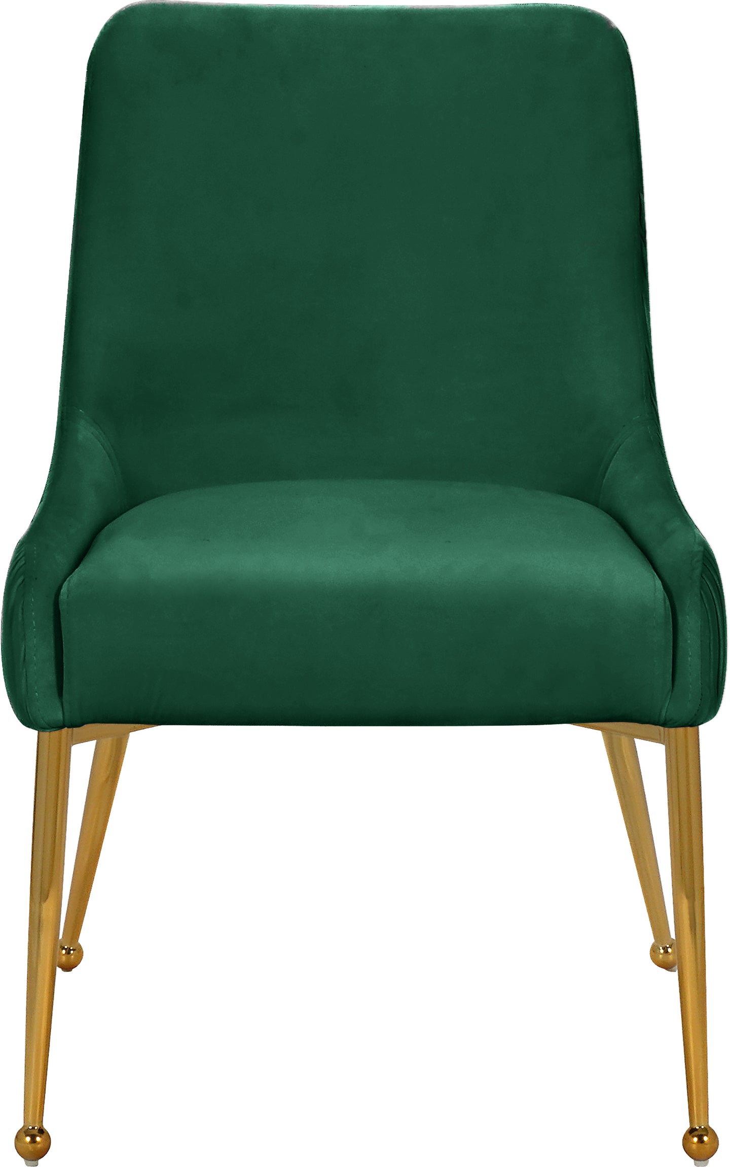 Elegance invades your dining room when you add this Ace velvet dining chair to the mix. This beautiful chair features the bells and whistles you need to take your dining room to the next level decoratively. The chair is outfitted in soft black velvet upholstery with a pleated design for added textural appeal. Polished gold legs with ball feet and a matching gold handle on the back round out the design on a stylish note.