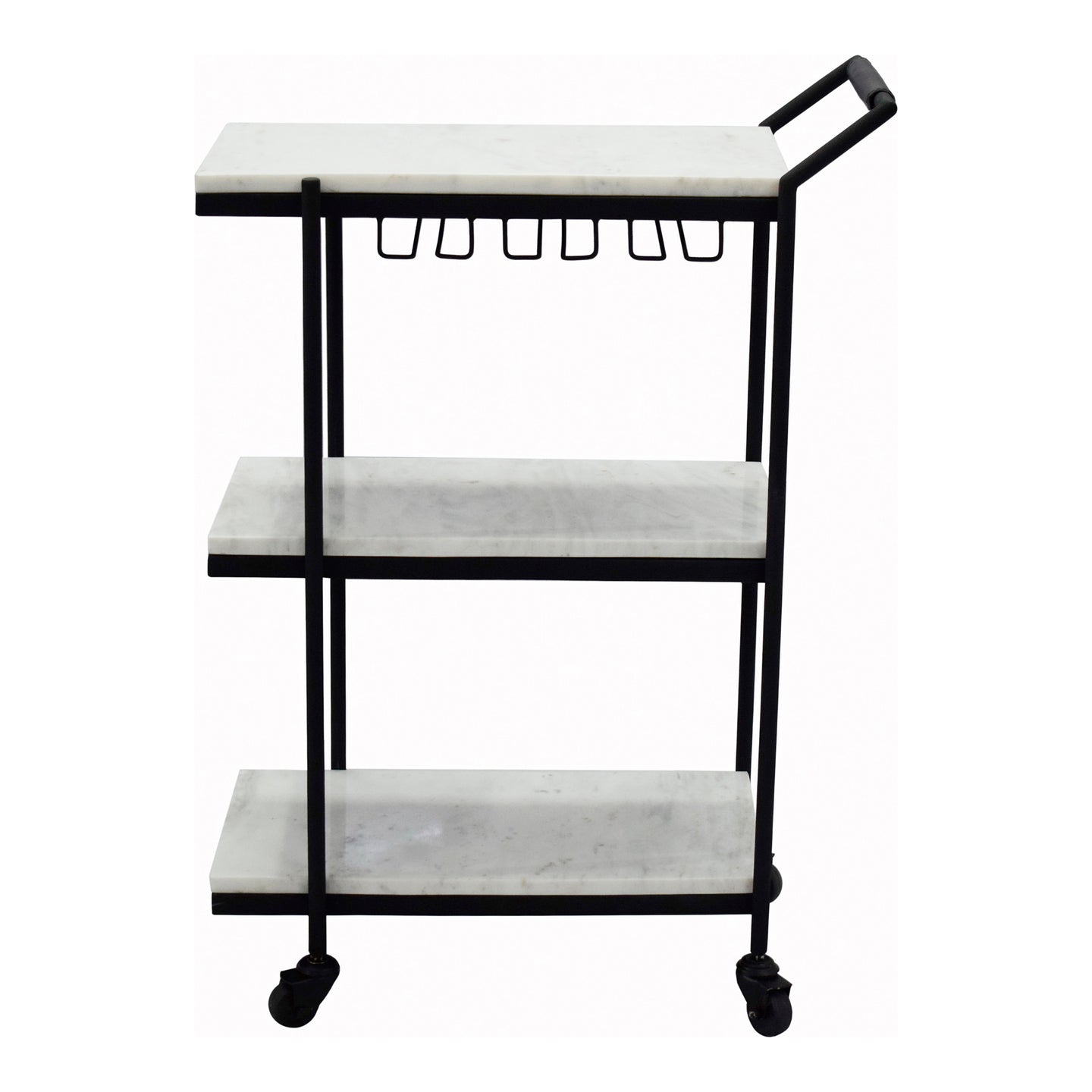 The Midnight bar cart is guaranteed to be a hit at your next hosting occasion. This dining room showstopper has a traditional style with a touch of retro glamor. Featuring three white marble shelves housed within an iron frame, this cart allows you to store your favorite drinks, glassware and cocktail accessories, and to serve your guests in style.