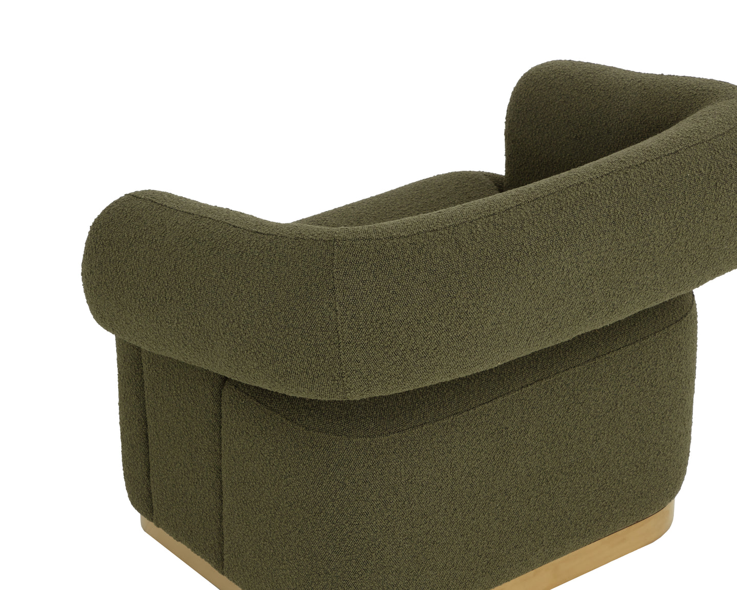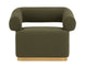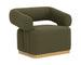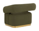 The Aggie Swivel Lounge chair is a statement-making mid-century accent chair with curves in all the right places. Upholstered in copenhagen olive fabric with a brushed gold stainless steel base, this lounge chair is a beautiful spectacle with its harmonious mix of textures.