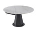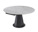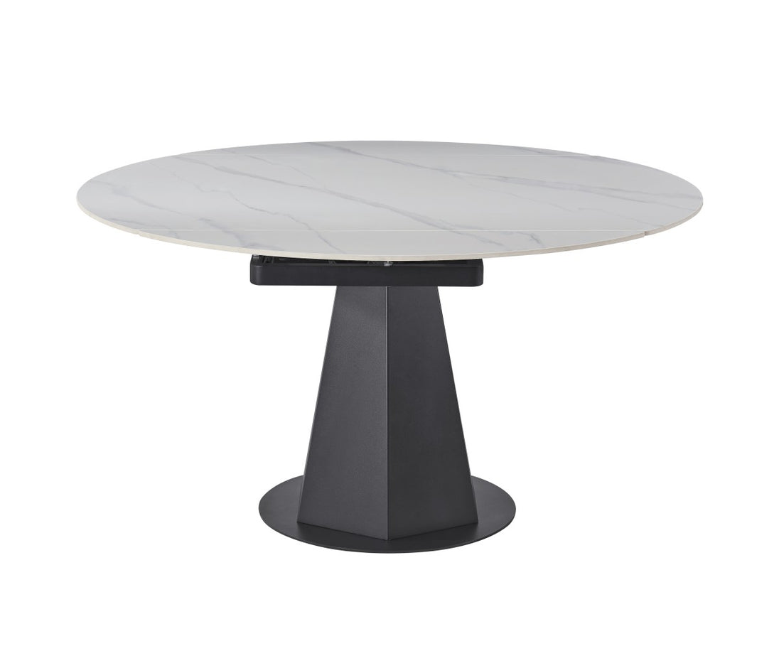 The Akira Dining Table in Snowy White, a perfect embodiment of contemporary design and elegance. This sophisticated table features an 11mm sintered stone top in a pristine snowy white color, accented with cascading veins that bring a touch of natural beauty to any dining space. The sturdy black powder-coated metal frame and legs provide a sleek contrast, ensuring both durability and modern appeal. Additionally, the Akira Dining Table is equipped with a rotating middle mechanism and dual 9-inch extensions, offering versatile functionality for both everyday meals and special occasions. Elevate your dining experience with the stylish and practical Akira Dining Table.