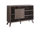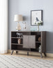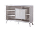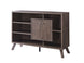 Add a touch of glamour to your in-home dining experience with this stunning multi-tiered buffet. The ample storage space provided by the storage cabinet and five open shelves combine form and functionality. It lustrous sheen and polished silver hardware enhance elegance, and the rich grey finish brings sophistication and modernism to your dining space.