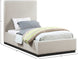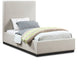 Give your bedroom a regal vibe when you add this Alfie linen textured fabric bed to the mix. The ultra tall headboard on this twin-size bed makes a bold impression from all angles and is covered in rich beige linen textured fabric that forms a pleasant contrast with the black finish solid wood base. The full flat design lets you easily use this bed without a box spring - a top mattress is all that's needed.