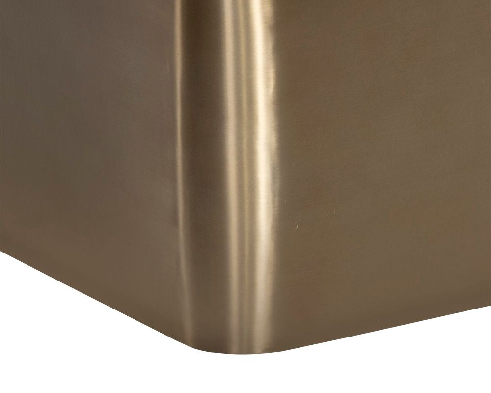 Bring boldness to any space with this eye-catching coffee table. Crafted with a rectangular stainless steel base in an antique brass finish. Completed with a grey glass top for a contemporary look.