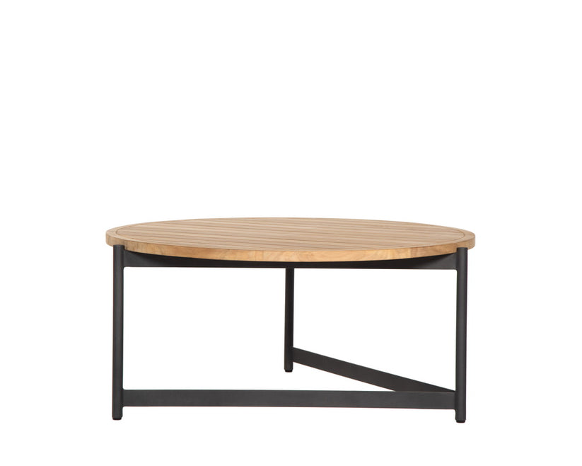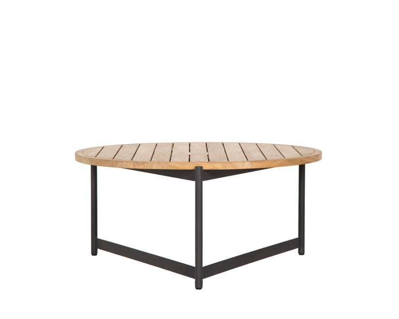 Complete your outdoor lounge with this modern coffee table from the Outdoor by SUNPAN collection. Features a black powder coated aluminum frame and a paneled natural teak wood top. Teak wood will develop a silver-grey finish over time. Coordinating small coffee table can be nested below.