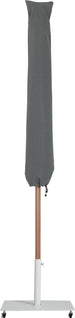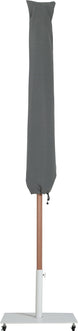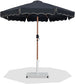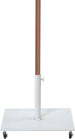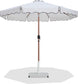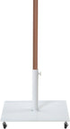 Escape from the sun's rays when you're basking beneath this Amalfi white fabric with black piping and teak aluminum patio umbrella with matte white base set. On casters to make it a simple feat to move it from spot to spot, this umbrella and stand is an ideal option for adding shade to any area of your deck or patio. The aluminum pole weathers the elements with ease and is finished in teak for a resort-inspired look. The umbrella's fabric is water and color-fade-resistant, ensuring lasting beauty in your outdoor space.