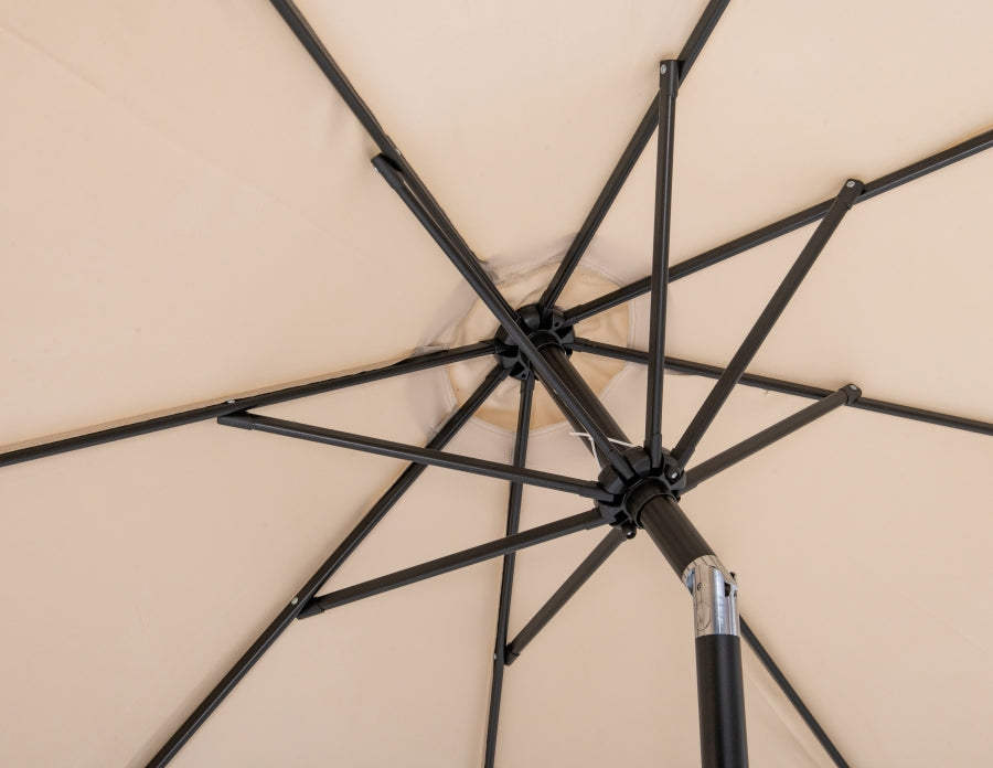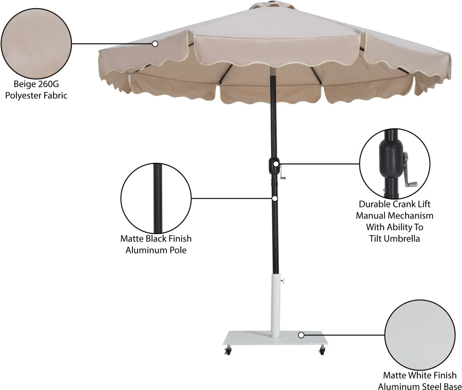 - Durable Crank Lift Manual Mechanism With Ability To Tilt Umbrella