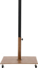 Escape from the sun's rays when you're basking beneath this Amalfi black fabric with cream piping and matte black aluminum patio umbrella with teak base set. On casters to make it a simple feat to move it from spot to spot, this umbrella and stand is an ideal option for adding shade to any area of your deck or patio. The aluminum pole weathers the elements with ease and is finished in matte black for a resort-inspired look. The umbrella's fabric is water and color-fade-resistant, ensuring lasting beauty in your outdoor space.