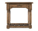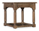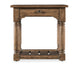 In a classic and clean design with a nostalgic flair, the 26W x 30D rectangle-shaped Americana End Table has turned carved legs, scroll accents in the corners and a planked bottom fixed shelf with an interlocked design that exudes craftsmanship. Made of Oak Veneers with a Solid-Wood Edge Top, it is finished in Honey, a gentle, warm brown tone with distressing that hints at the passage of time, while the smooth surface invites you to run your fingers across it, connecting you with past generations. A metal alloy oval pull in an antique bronze finish adds a final touch.