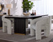 - Base/Legs: Travertine