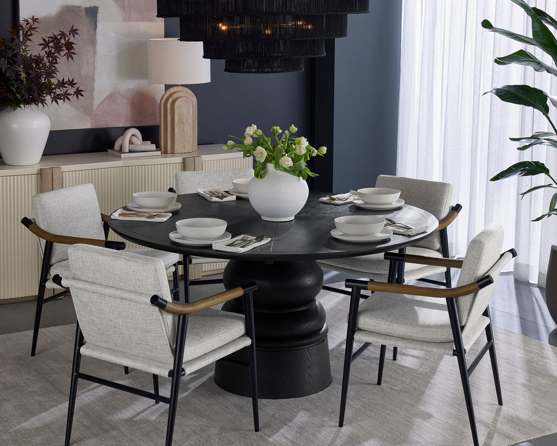 The balanced proportions of the Ancona Table Lamp lend an impression of visual harmony. Handcrafted from natural travertine, graduated tiers of smooth curves and clean lines create a memorable geometric base complemented by a cream linen shade.