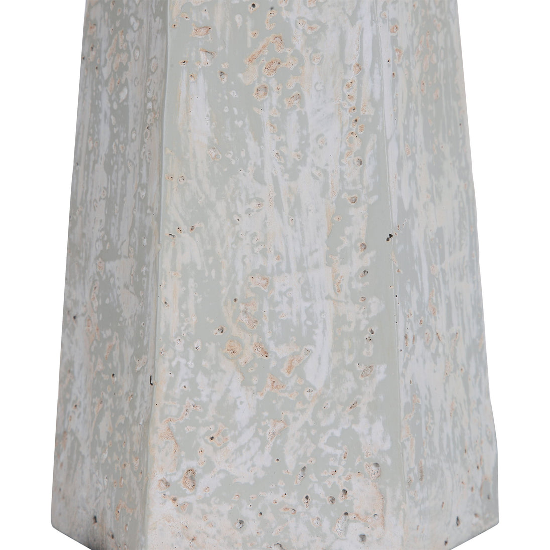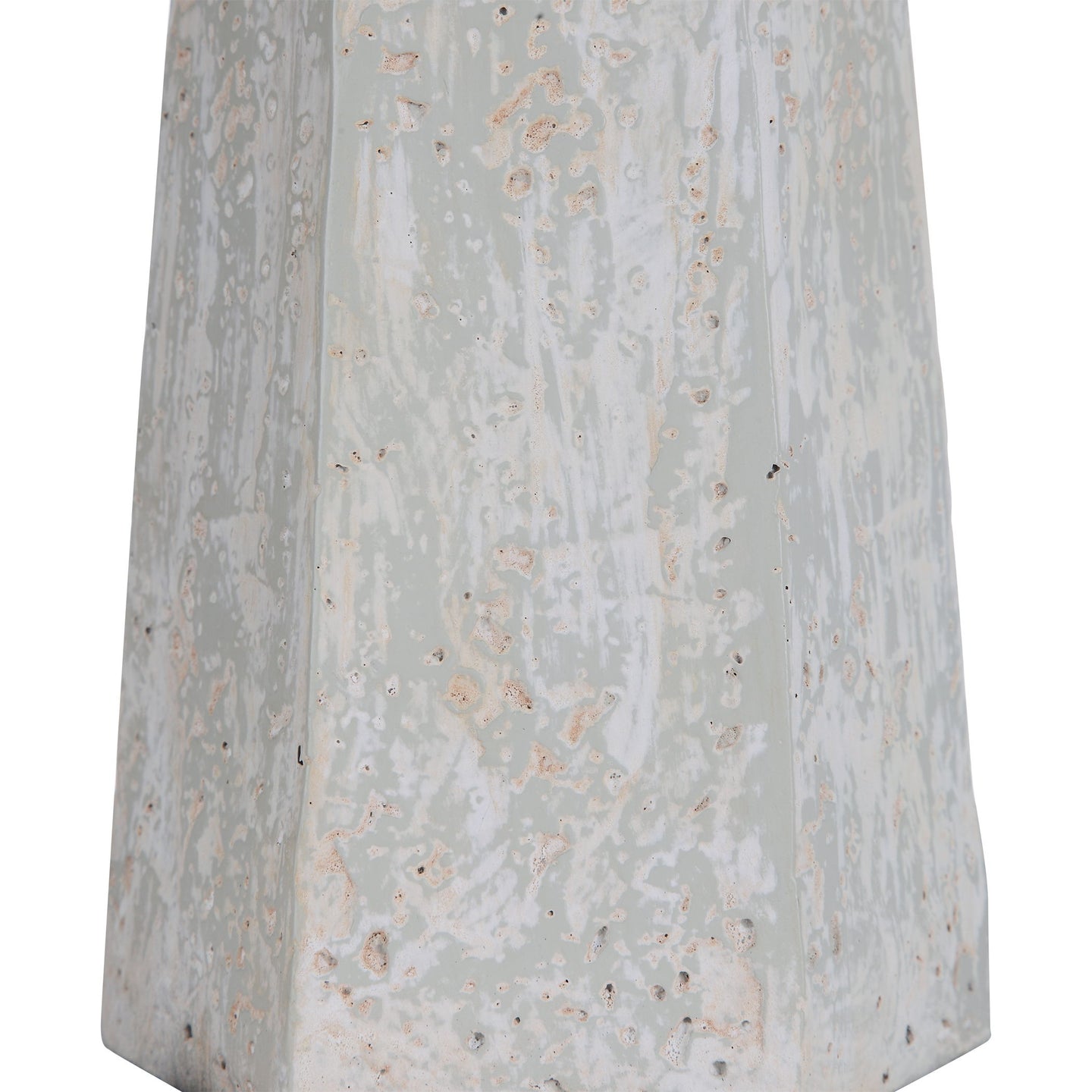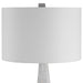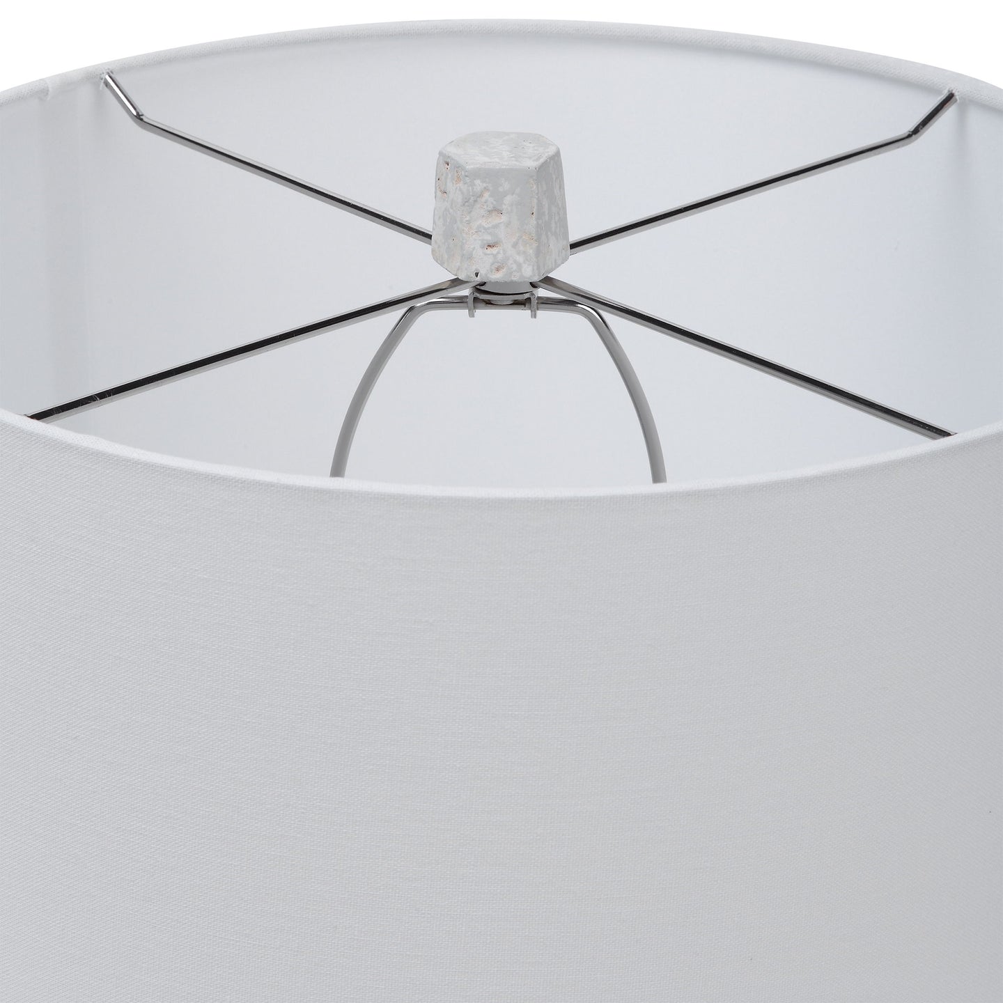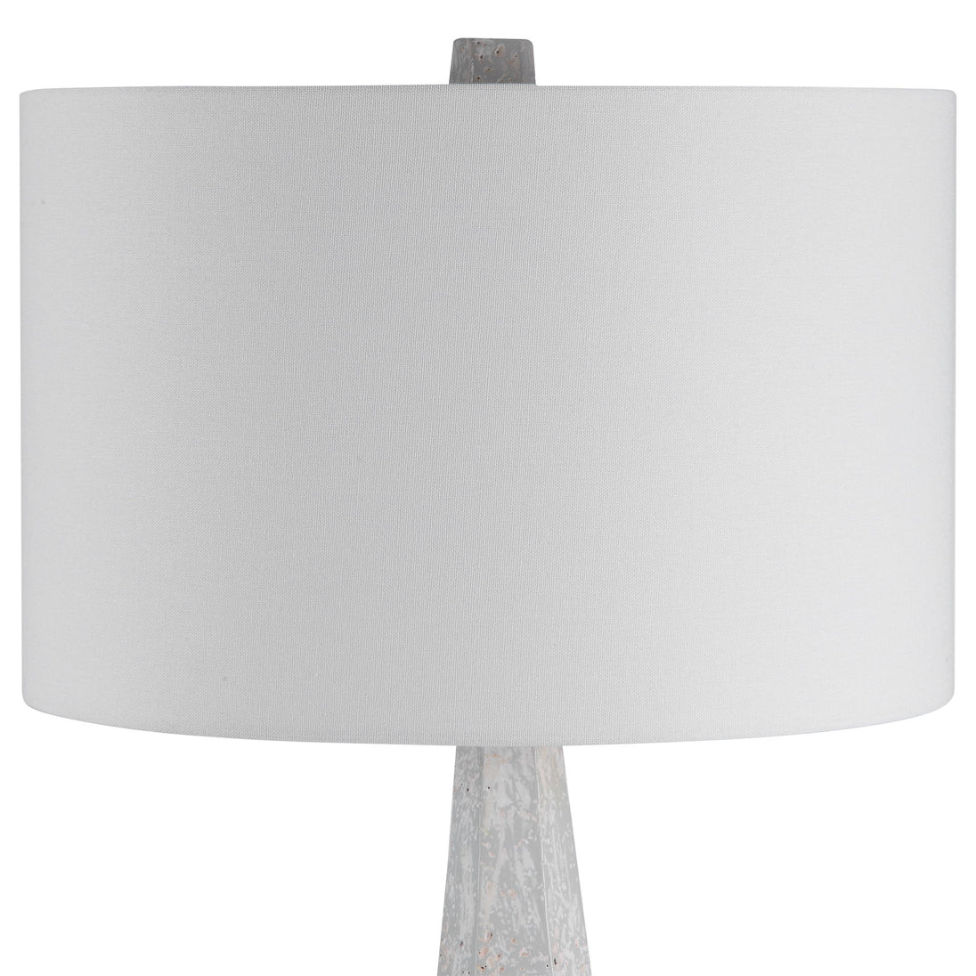 This Table Lamp Showcases A Tapered Base In A Concrete Look With Crisp Edges And Porous Texture Finished In Off-white, Light Gray, And Taupe Tones, Paired With Brushed Nickel Accents. The Round Hardback Drum Shade Is A White Linen Fabric.Product Features