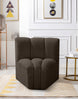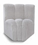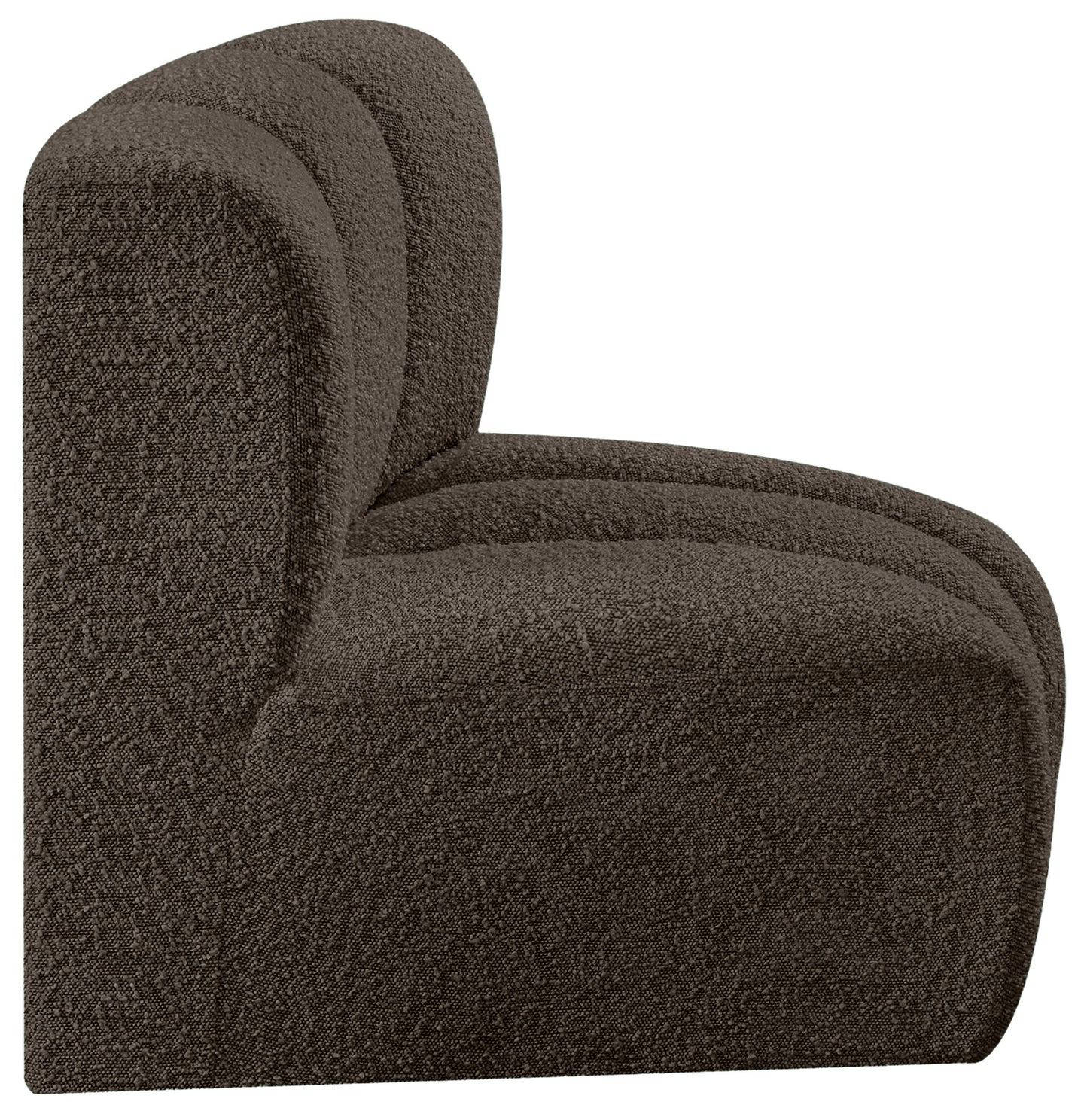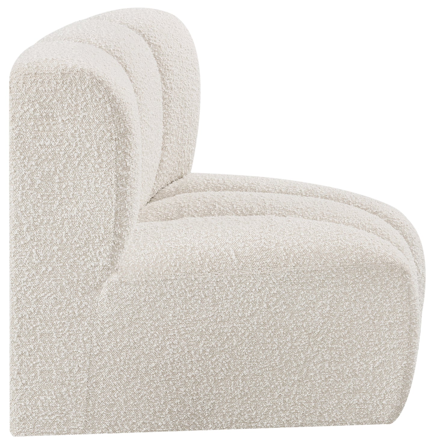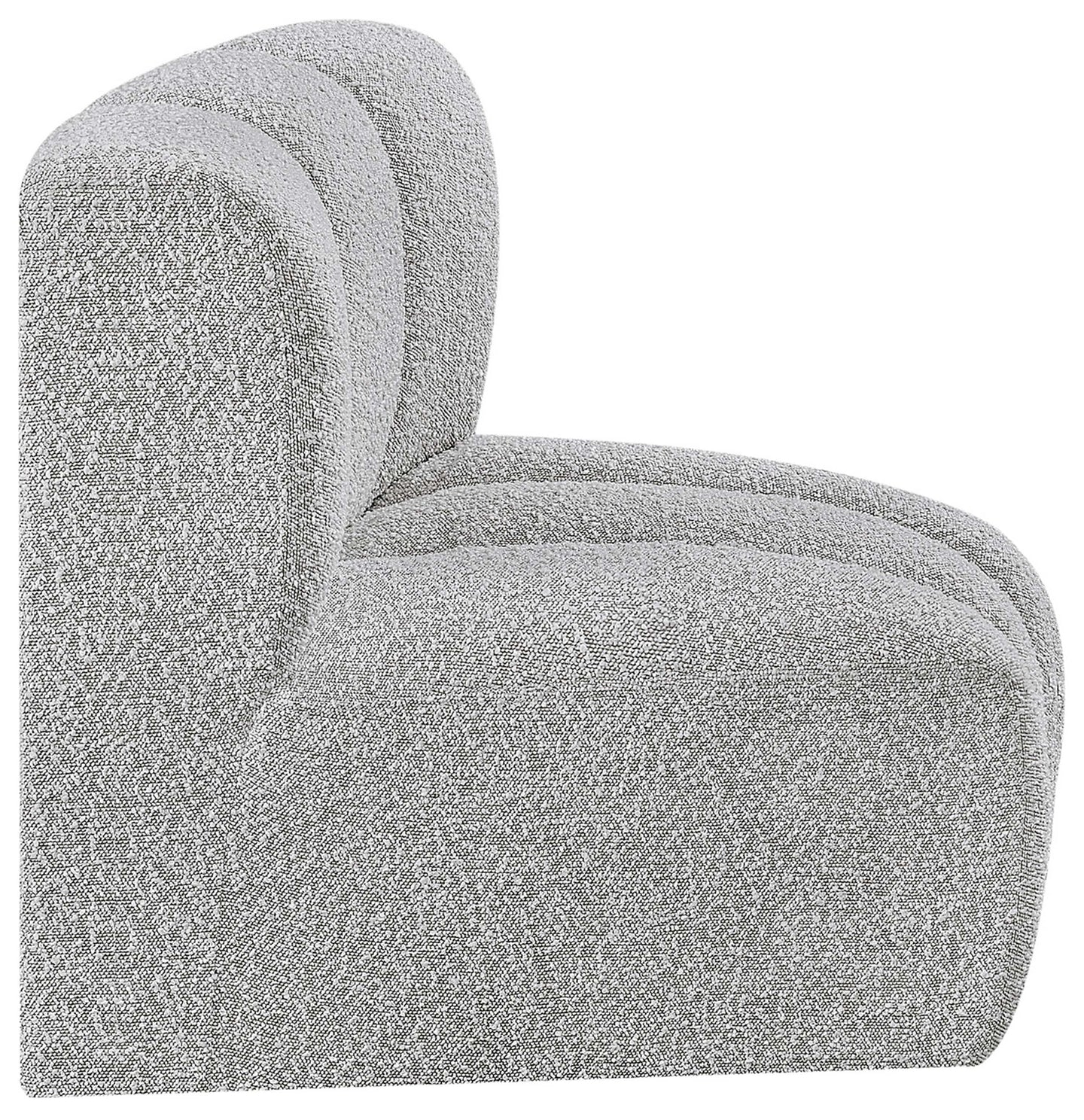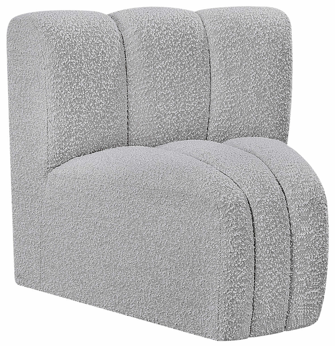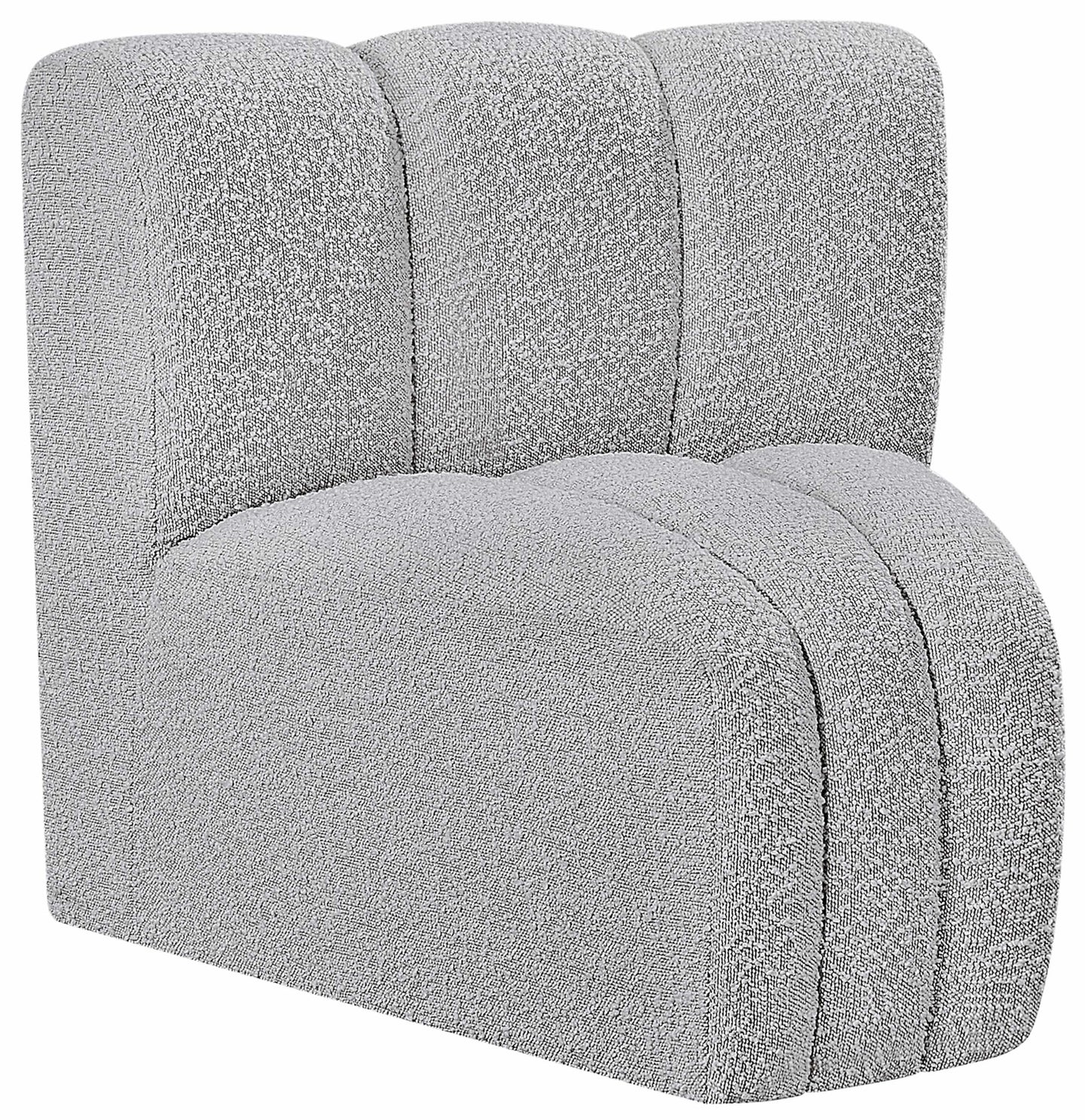 Give your living room or den the perfect blend of style and versatility with this Arc boucle fabric curved corner chair. Part of the Arc modular furniture collection, this chair comes upholstered in rich black boucle fabric and features deep channel tufting that adds a touch of luxury while enhancing comfort and support. A seamless combination of form and function, this chair can be used with other Arc pieces to create a myriad of configurations in your well-curated room.