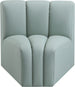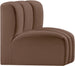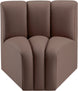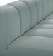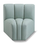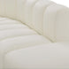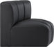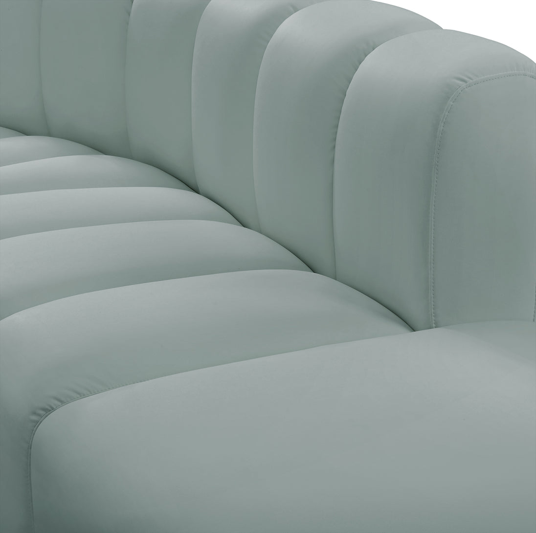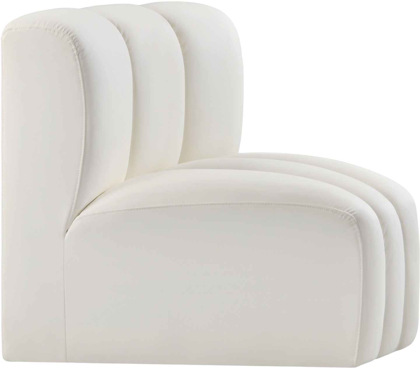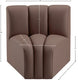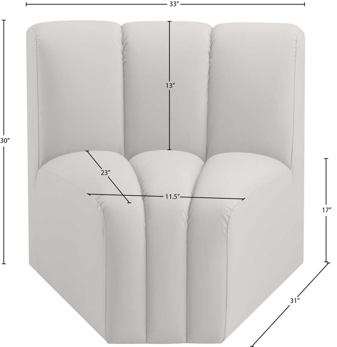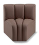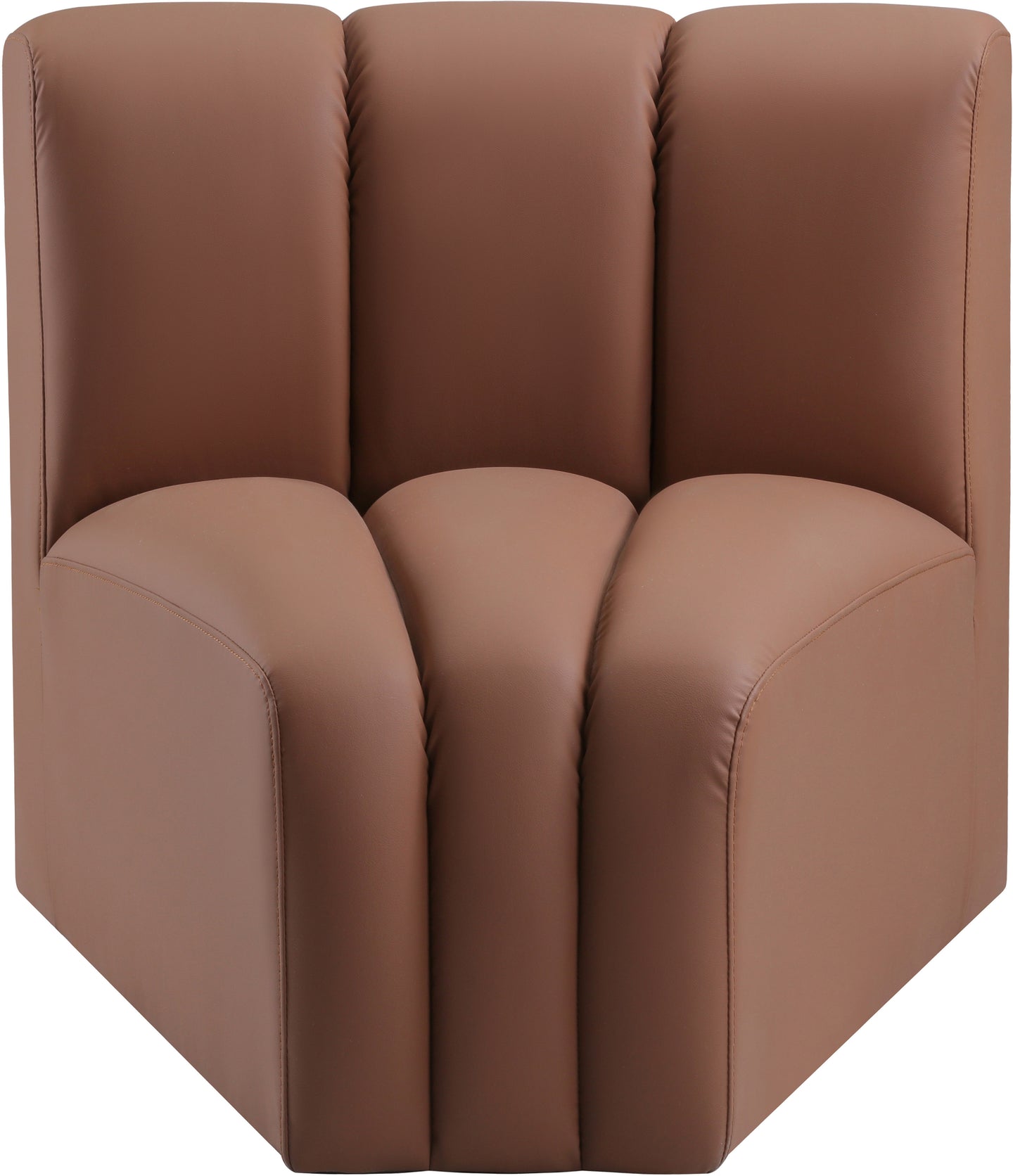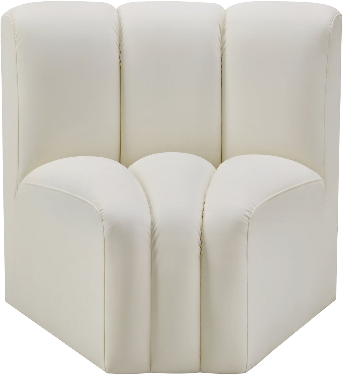 Unleash modern opulence with the Arc Vegan Leather Curved Corner. Crafted for the modern connoisseur, this chair injects an air of refined luxury into any space. Its sleek silhouette, upholstered in supple black vegan leather, exudes timeless sophistication while the deep channel tufting adds textural intrigue, further elevating the chair's visual appeal. The modular design makes it a versatile chameleon, effortlessly adapting to your evolving needs and preferences. Whether you envision it gracing a chic living room corner, basking in the glow of a bedroom window, or adding a touch of drama to a home office, the Arc seamlessly complements your unique interior aesthetic.
