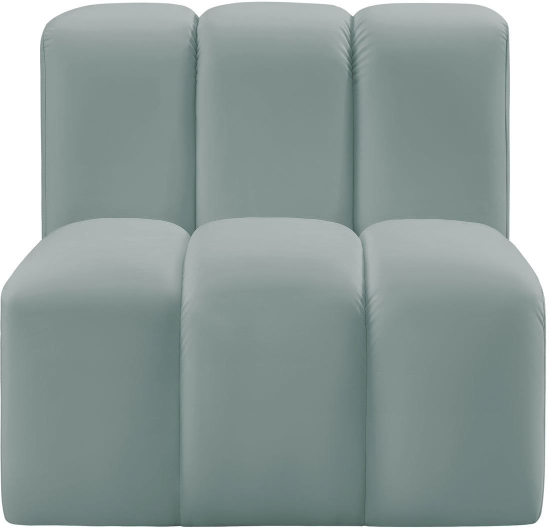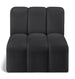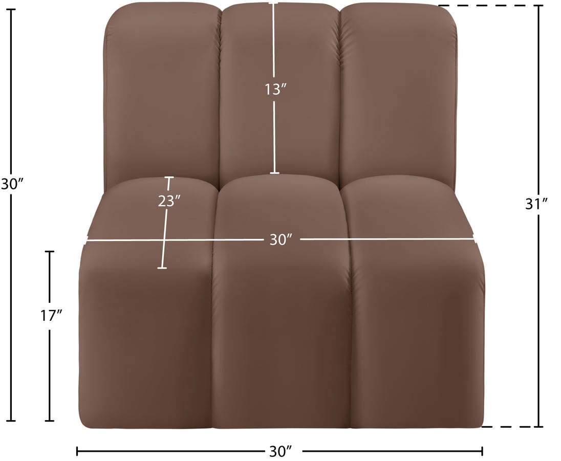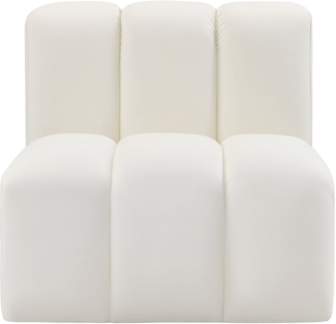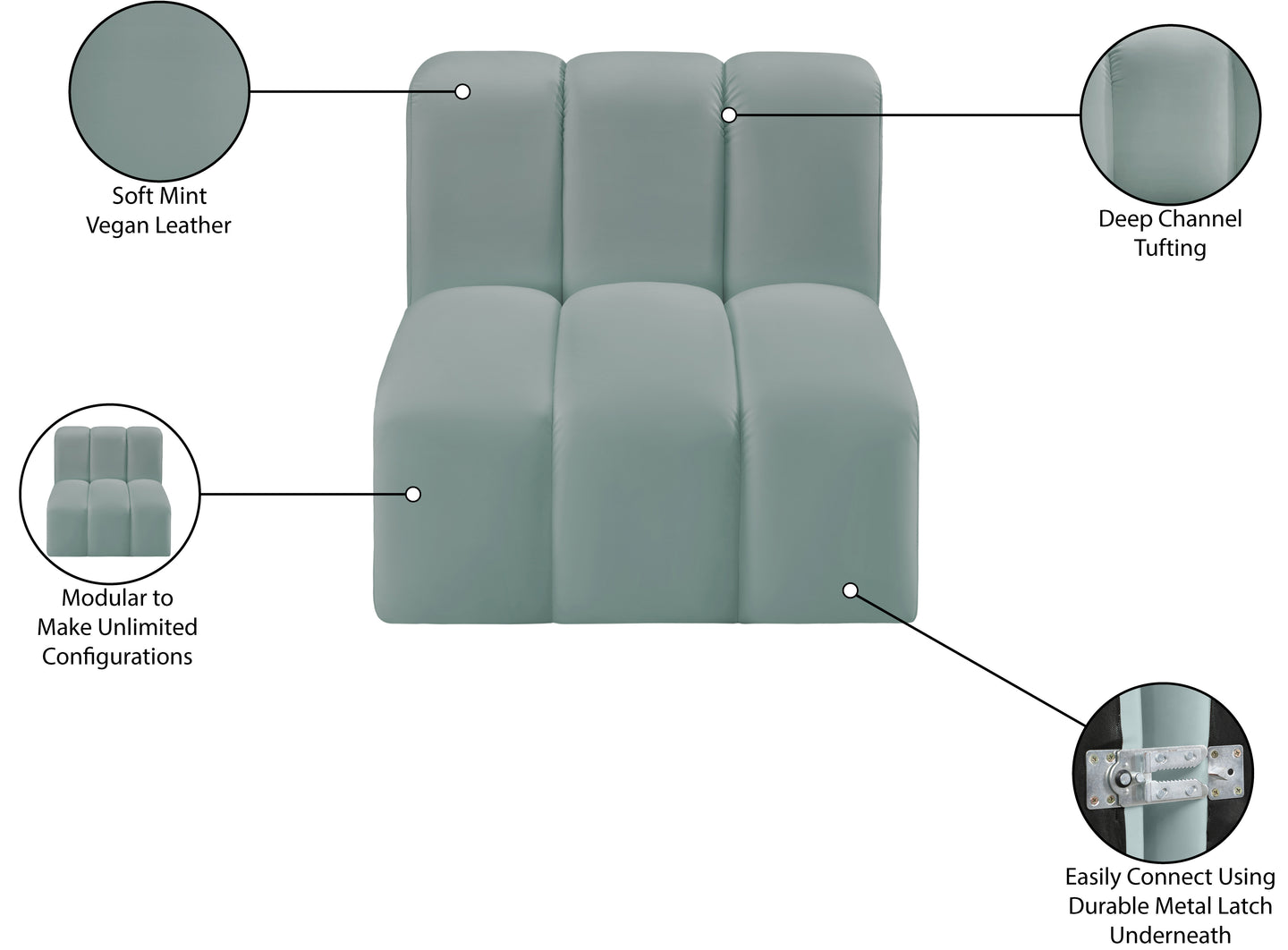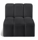 Unleash modern opulence with the Arc Vegan Leather Straight Chair. Crafted for the modern connoisseur, this chair injects an air of refined luxury into any space. Its sleek silhouette, upholstered in supple black vegan leather, exudes timeless sophistication while the deep channel tufting adds textural intrigue, further elevating the chair's visual appeal. The modular design makes it a versatile chameleon, effortlessly adapting to your evolving needs and preferences. Whether you envision it gracing a chic living room corner, basking in the glow of a bedroom window, or adding a touch of drama to a home office, the Arc seamlessly complements your unique interior aesthetic.