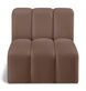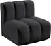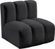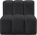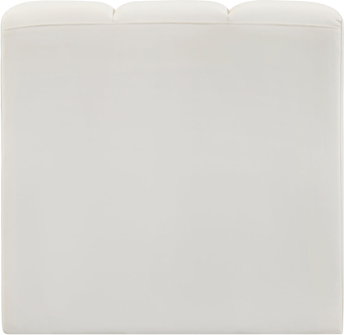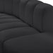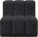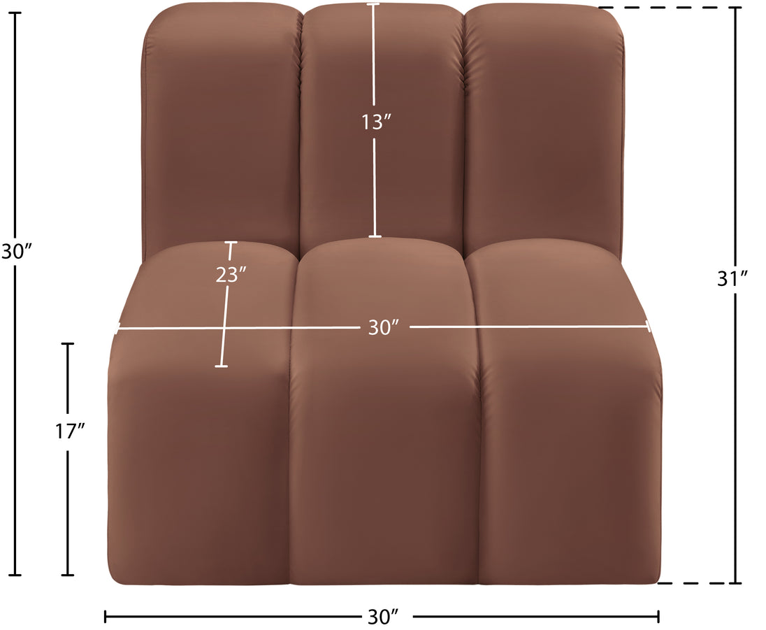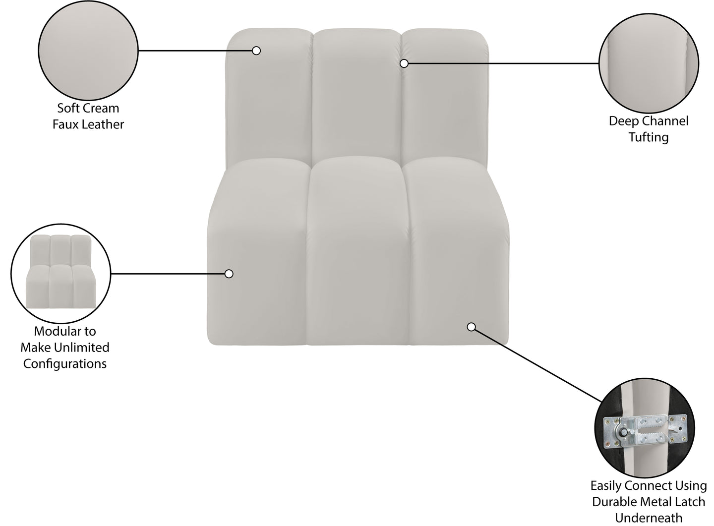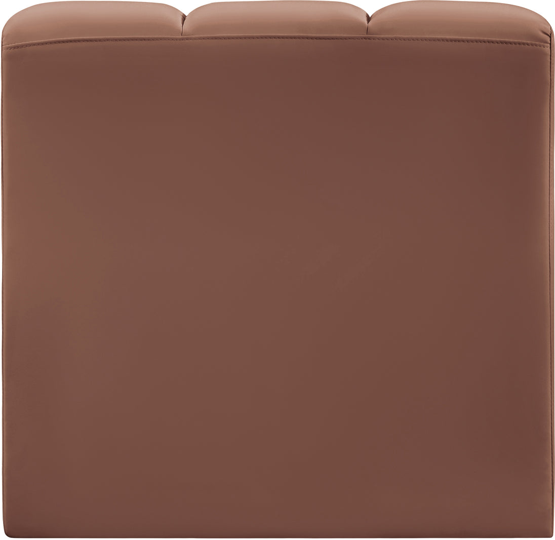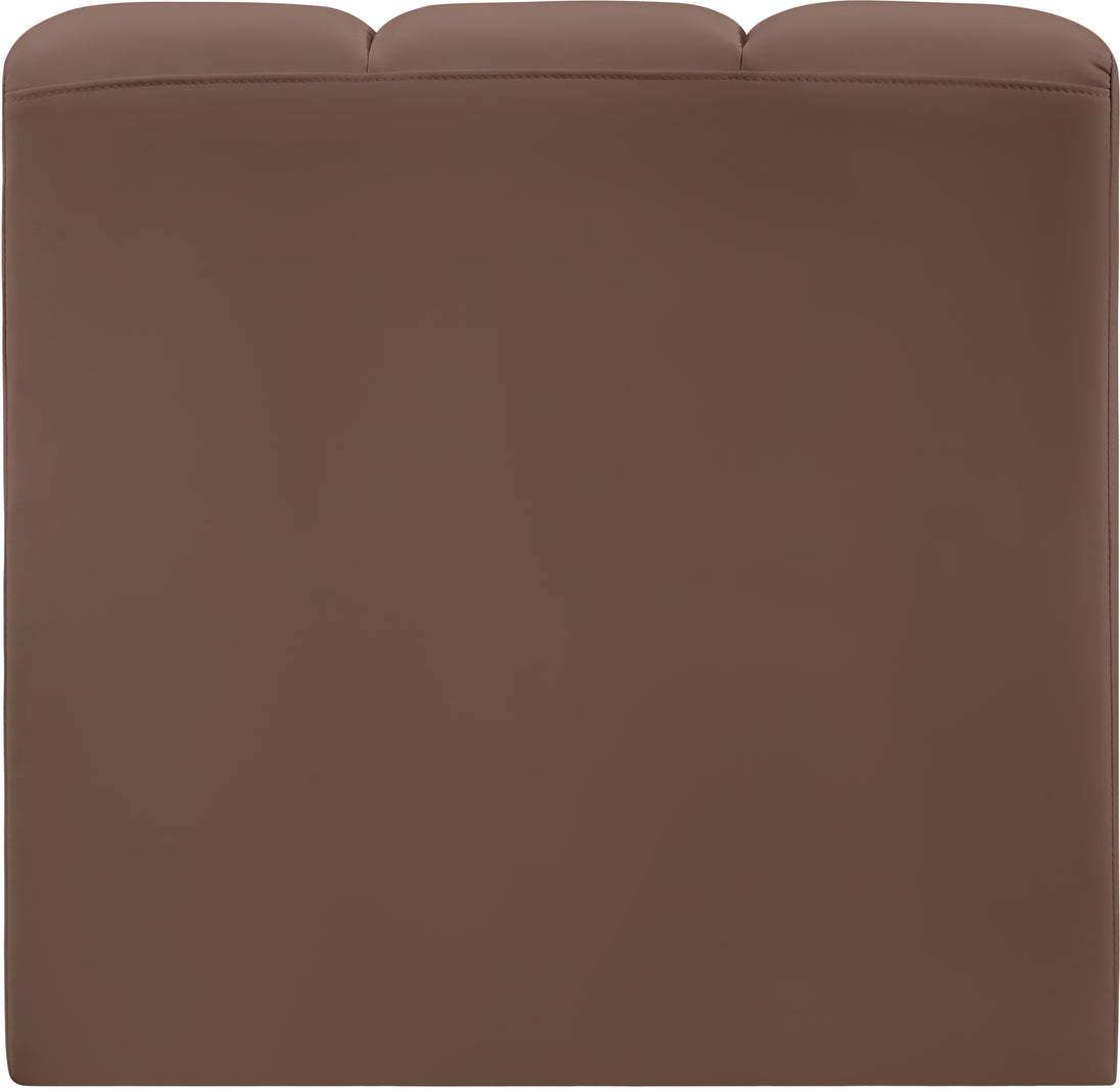 Unleash modern opulence with the Arc Vegan Leather Straight Chair. Crafted for the modern connoisseur, this chair injects an air of refined luxury into any space. Its sleek silhouette, upholstered in supple black vegan leather, exudes timeless sophistication while the deep channel tufting adds textural intrigue, further elevating the chair's visual appeal. The modular design makes it a versatile chameleon, effortlessly adapting to your evolving needs and preferences. Whether you envision it gracing a chic living room corner, basking in the glow of a bedroom window, or adding a touch of drama to a home office, the Arc seamlessly complements your unique interior aesthetic.