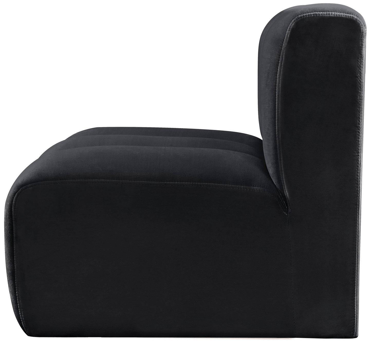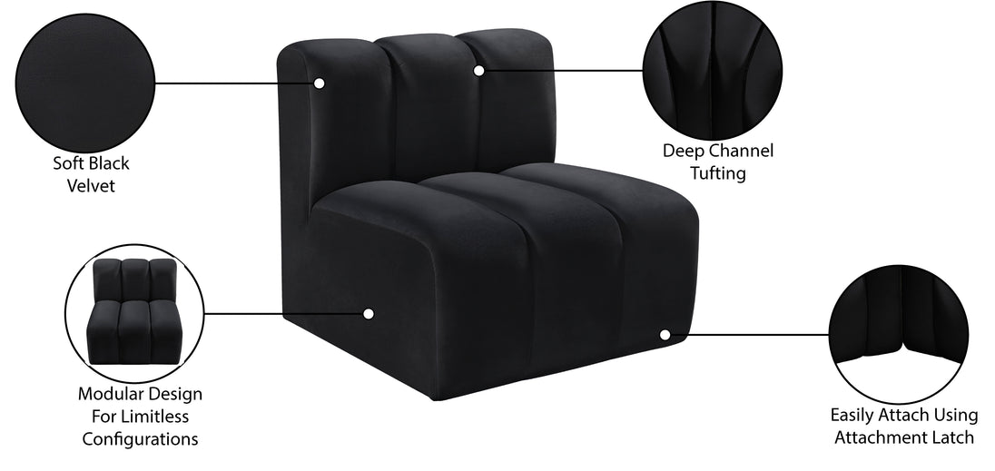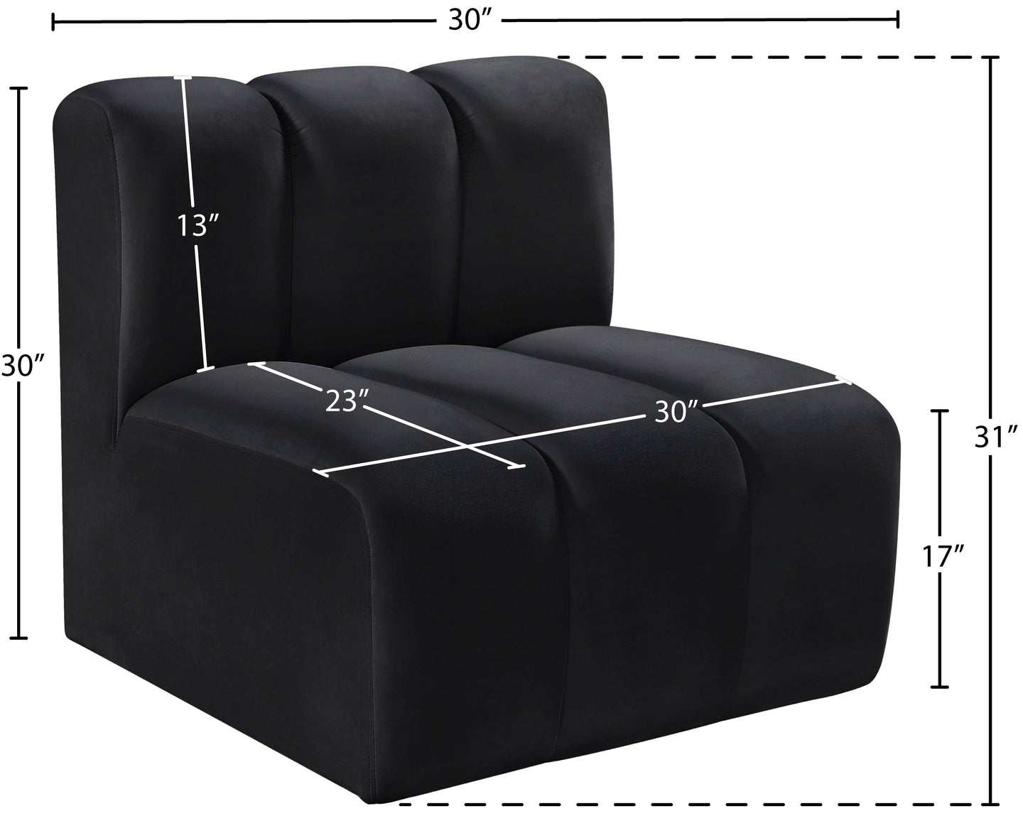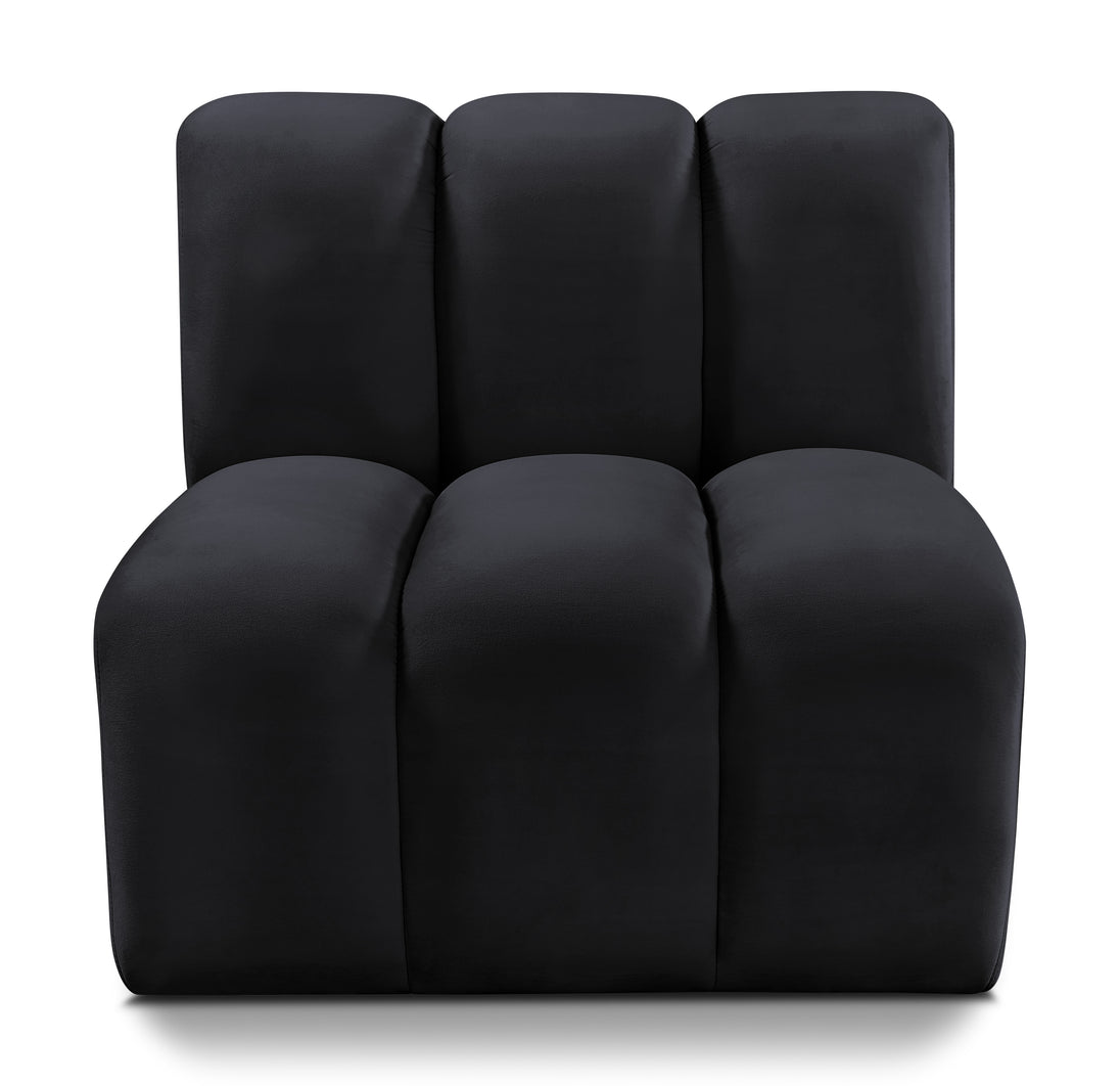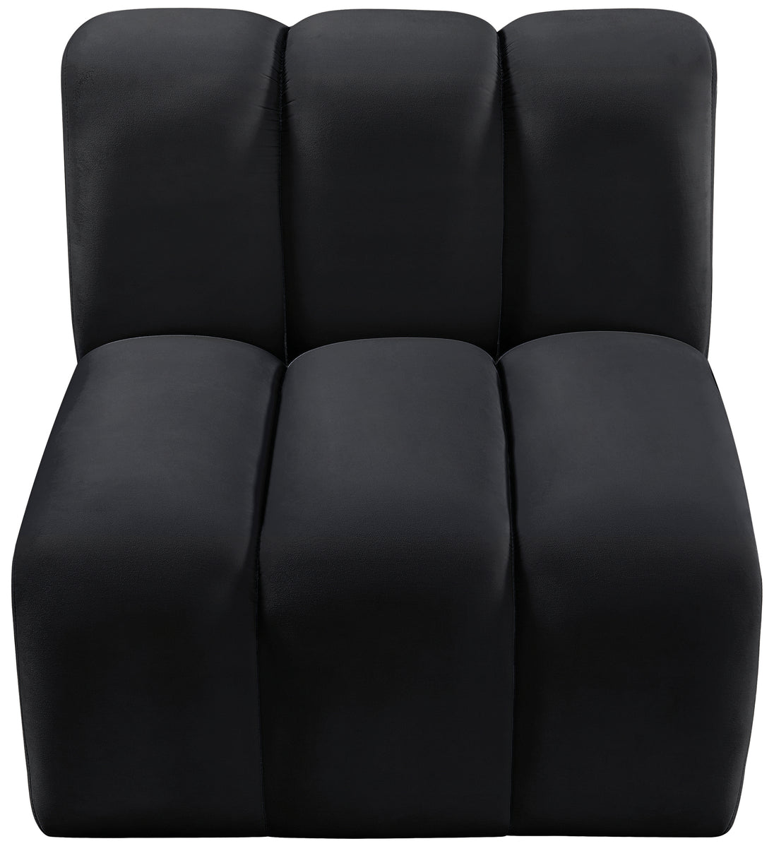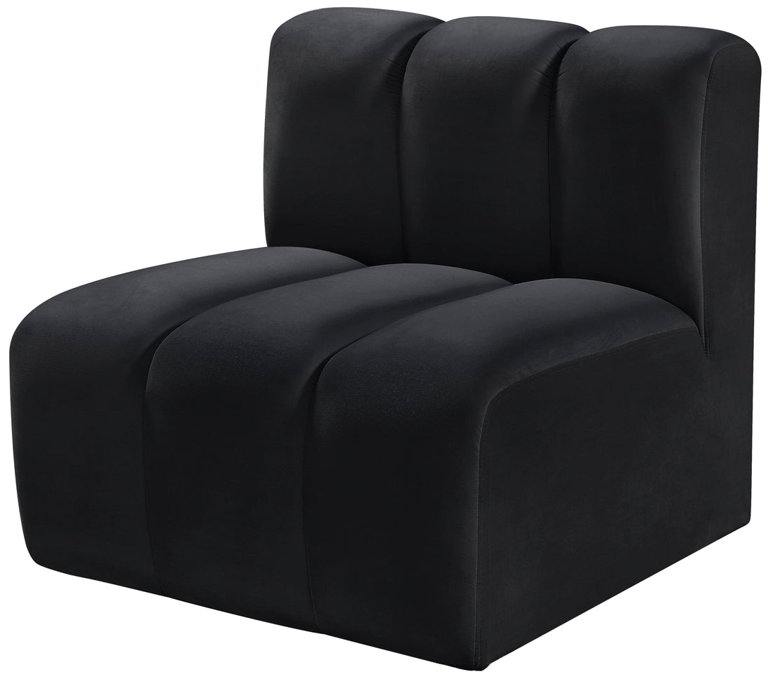Give your living room or den the perfect blend of style and versatility with this Arc velvet fabric curved straight chair. Part of the Arc modular furniture collection, this sofa comes upholstered in rich black velvet fabric and features deep channel tufting that adds a touch of luxury while enhancing comfort and support. A seamless combination of form and function, this chair can be used with other Arc pieces to create a myriad of configurations in your well-curated room.