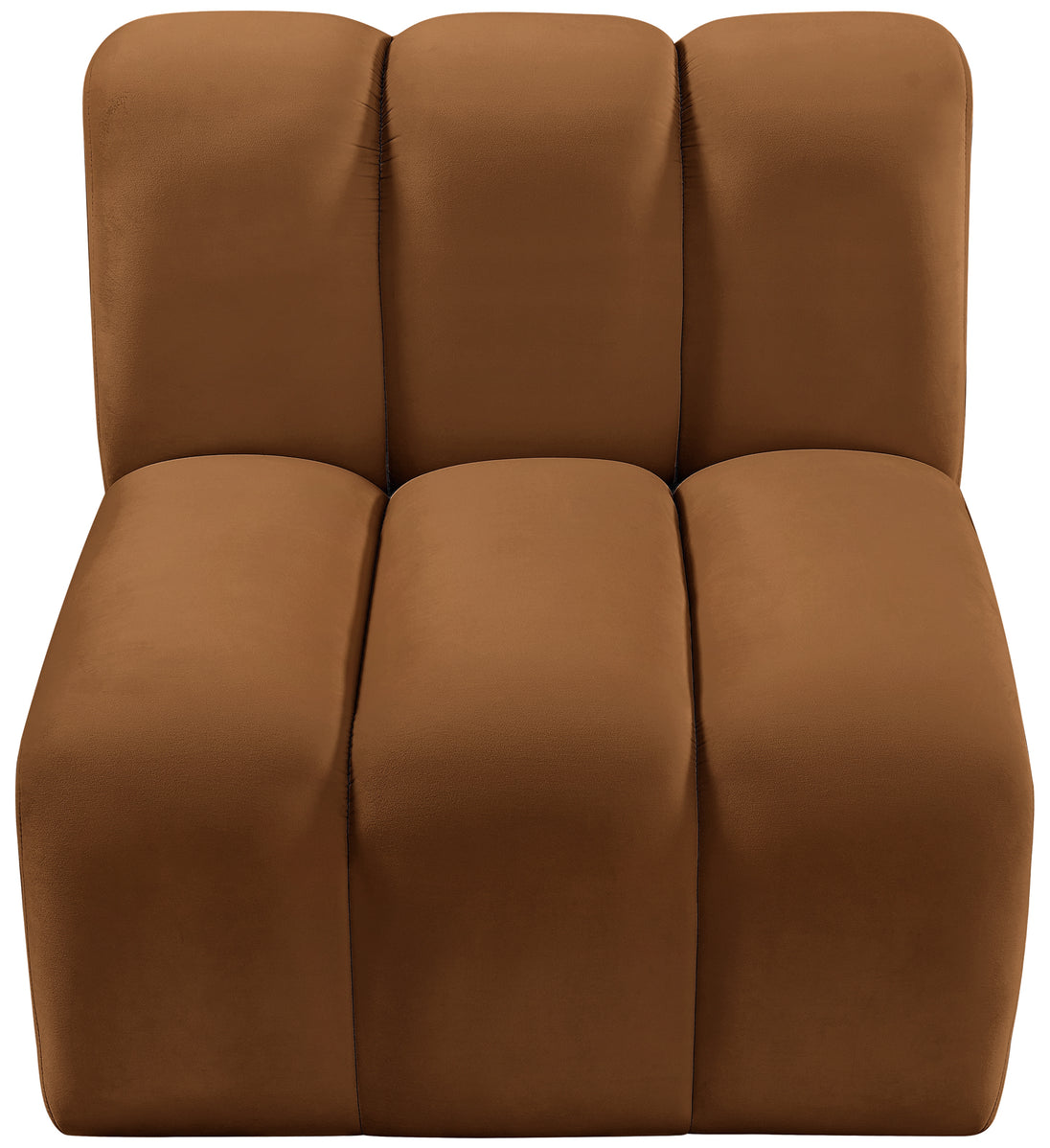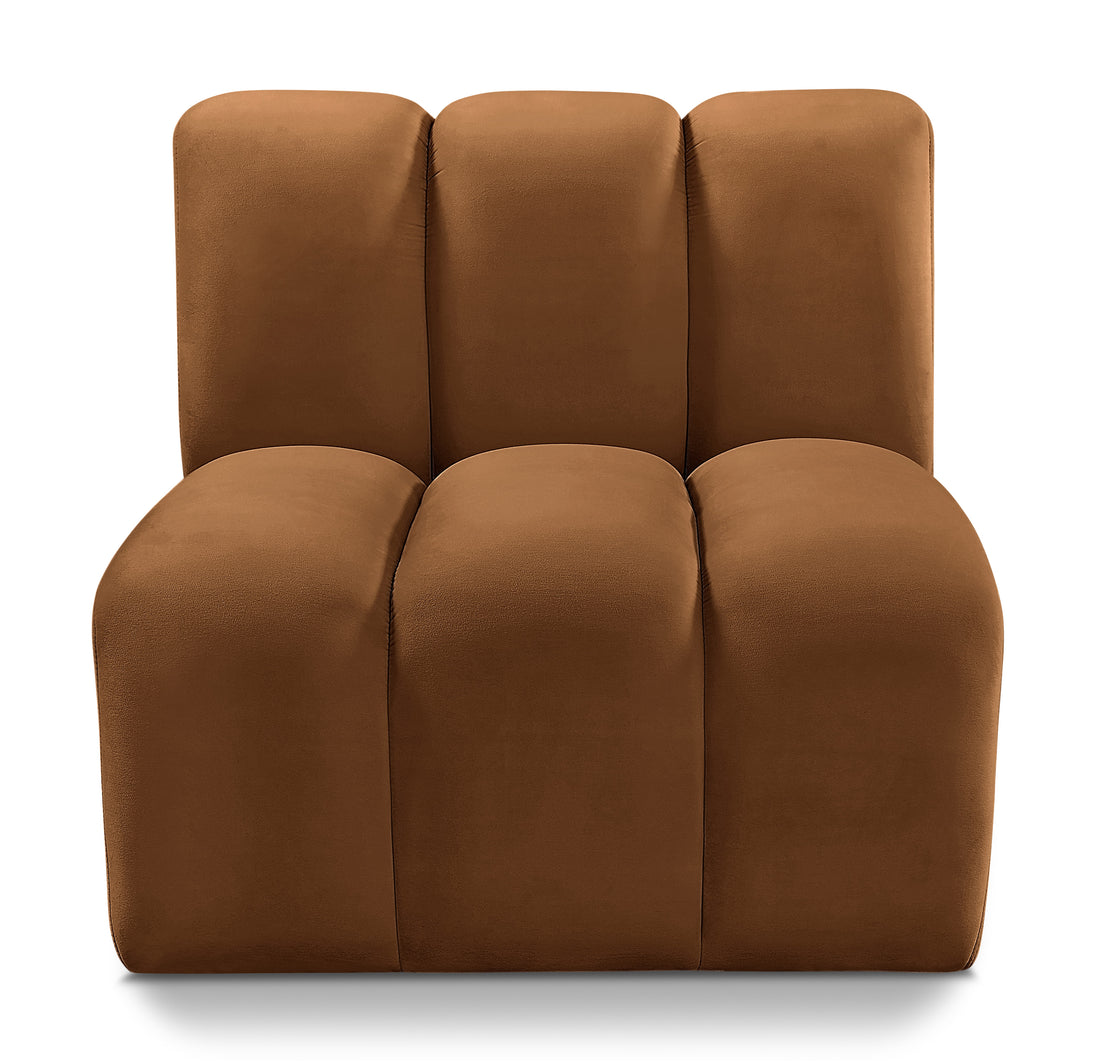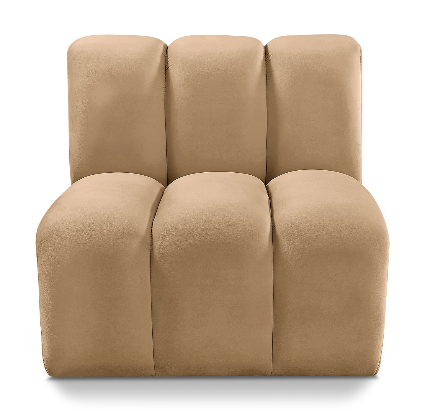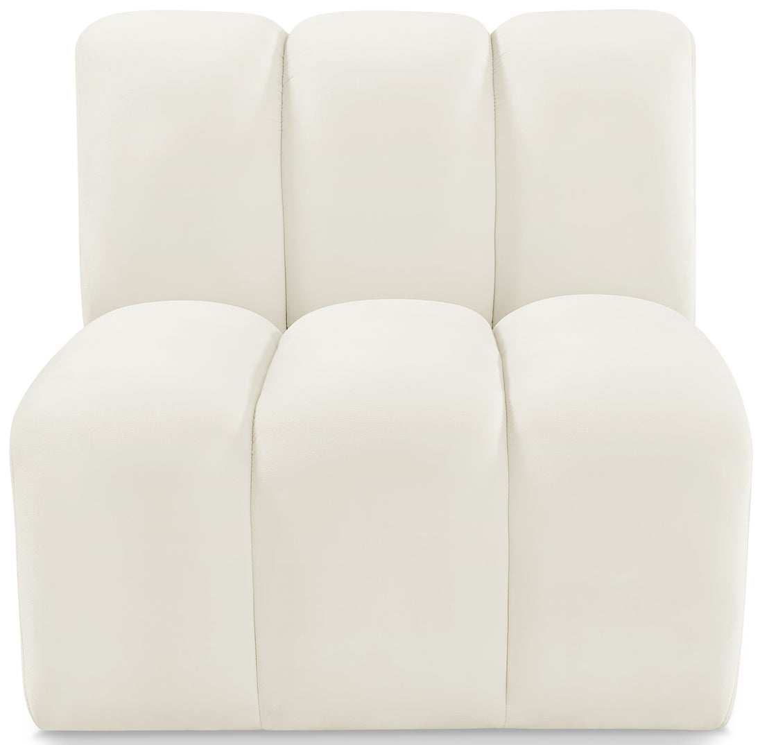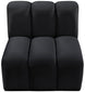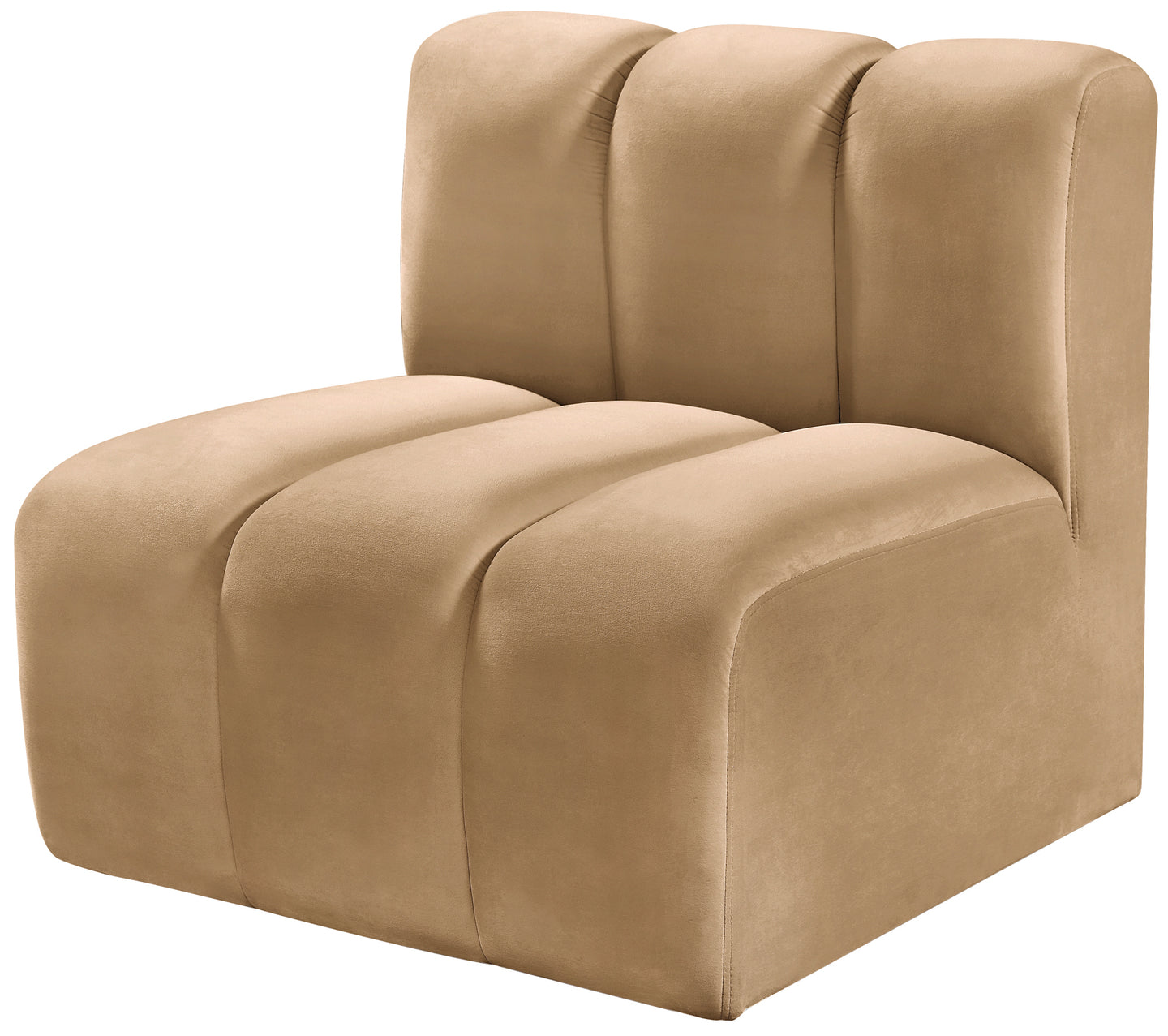 Give your living room or den the perfect blend of style and versatility with this Arc velvet fabric curved straight chair. Part of the Arc modular furniture collection, this sofa comes upholstered in rich black velvet fabric and features deep channel tufting that adds a touch of luxury while enhancing comfort and support. A seamless combination of form and function, this chair can be used with other Arc pieces to create a myriad of configurations in your well-curated room.