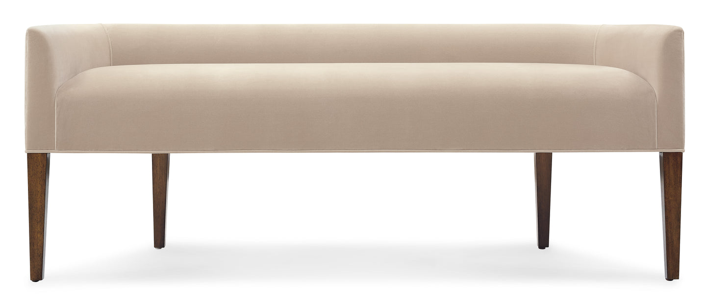 The Archives Bed Bench combines functionality with elegance. Upholstered in Liber Oat velvet, this performance fabric bench offers a soft, inviting seat, complemented by a low back and tapered wood legs. Finished in Classic Walnut, the bench is perfect for a bedroom setting, adding both style and comfort.