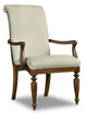 With a world-traveled pedigree, designer details and exquisite comfort come together in the Archivist Arm Chair to create a versatile chair of inviting elegance. From the roll-top back to the shaped goose-neck arms to the carved legs to the upholstered tack trim around the seat and back, the Archivist Arm Chair will welcome guests to linger around the table or in the family room as an extra seating option. The soft casual finish over rustic Pecky Pecan veneers contrasts beautifully with the neutral colored Aubergine Linen fabric on the seat and back.