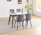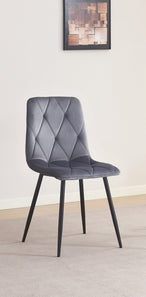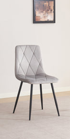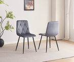 Paired with four light grey or dark grey velvet chairs, each seat showcases diamond pattern stitching, gently curved backs, and tapered black legsâcombining ergonomic comfort with modern flair.
