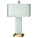 White Alabaster Base Accented With Plated Coffee Bronze Details. The Double Shade Is A Sheer Outer Hardback With A White Linen Inner Hardback.Product Features