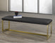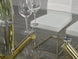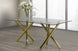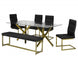 Give your dining room or kitchen nook a makeover with the chic 6-Piece Dining Set. This contemporary dining room set comes with a spacious rectangular table, four padded chairs, and a unique bench that will complement a wide range of modern décors. The table is fitted with a 10 mm clear tempered glass tabletop and a double X-frame base for a clean silhouette you’ll love showing off. Complete with golden finished legs, this dining table set will give your space a touch of luxe, without being overly flashy. The armless chairs and bench provide plenty of seating and give this set a chic minimalist profile. These comfortable seats can be easily tucked into the table when not in use and are fitted with a rich fabric cover that is easy to maintain for years to come.
