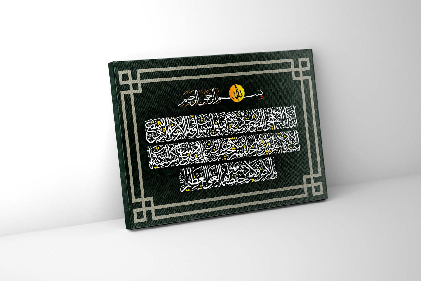 This is one of the well-known verses of the Quran and is widely memorized and displayed in the Islamic faith. -Wikipedia- This canvas print, you'll have a daily reminder of His attributes and blessings.