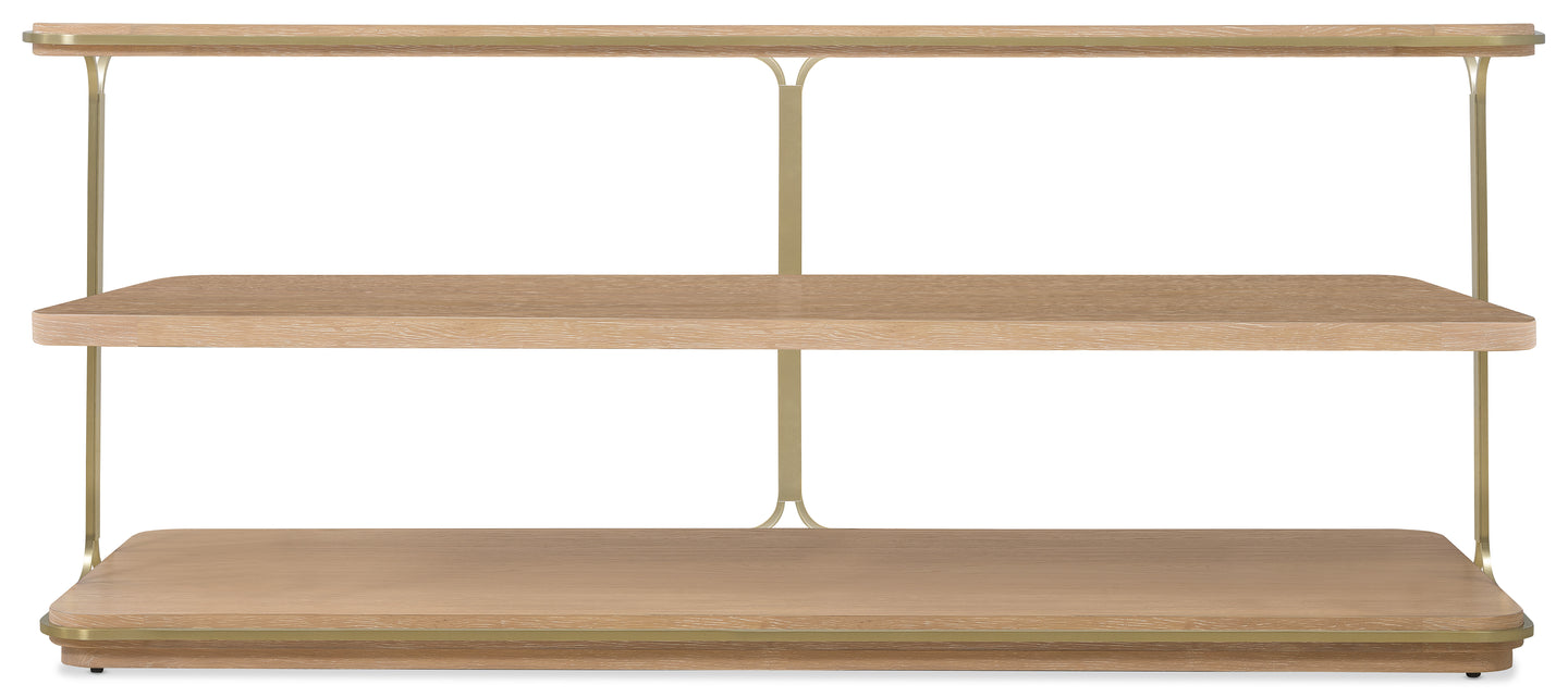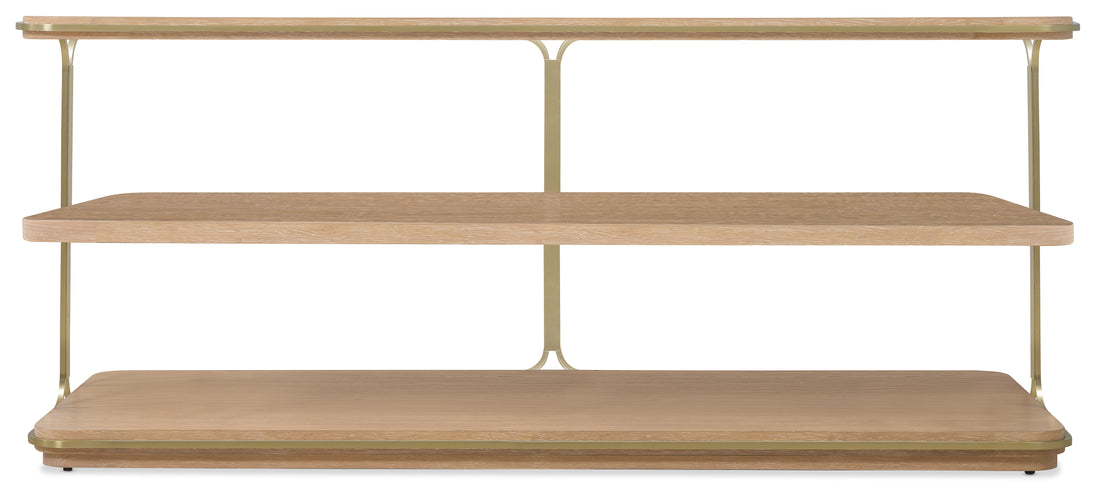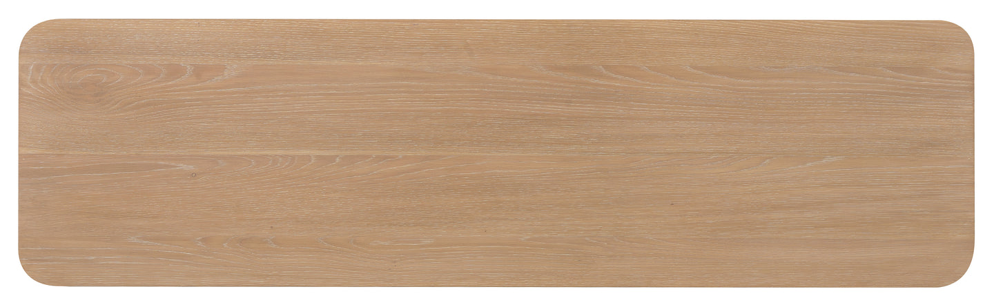 The Banyon Bay Console Table is designed for both function and style. Featuring white oak solids, oak veneers, and metal, this piece is finished in a light Desert Oak with wire-brushing and cerusing for enhanced texture. The brushed brass metal supports add a sleek, modern touch, while the rectangle shape and rounded corners give it a contemporary look. A fixed shelf beneath the tabletop provides additional storage or display space, making it a practical choice for entryways or living rooms. With its youthful, eclectic design, this console table brings a casual, sophisticated feel to urban, coastal, or mountain settings.