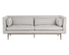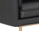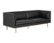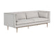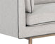 Inspire conversation while seated in this bold sofa. Streamlined and refined, this design features a sleek seat in belfast heather grey fabric with channel tufting on the exterior. Contrast piping in bravo portabella faux leather and a bronze steel base complete the look. Includes four cushions. Handle With Care: This design has been crafted with faux leather. Faux leather is manufactured to reflect the natural characteristics of leather; as such, colour variations, markings, wrinkles, grooves, and light scratches are appreciated characteristics. No two pieces will be alike. Visit our Product Care page for more information on how to ensure the lasting beauty of this piece.