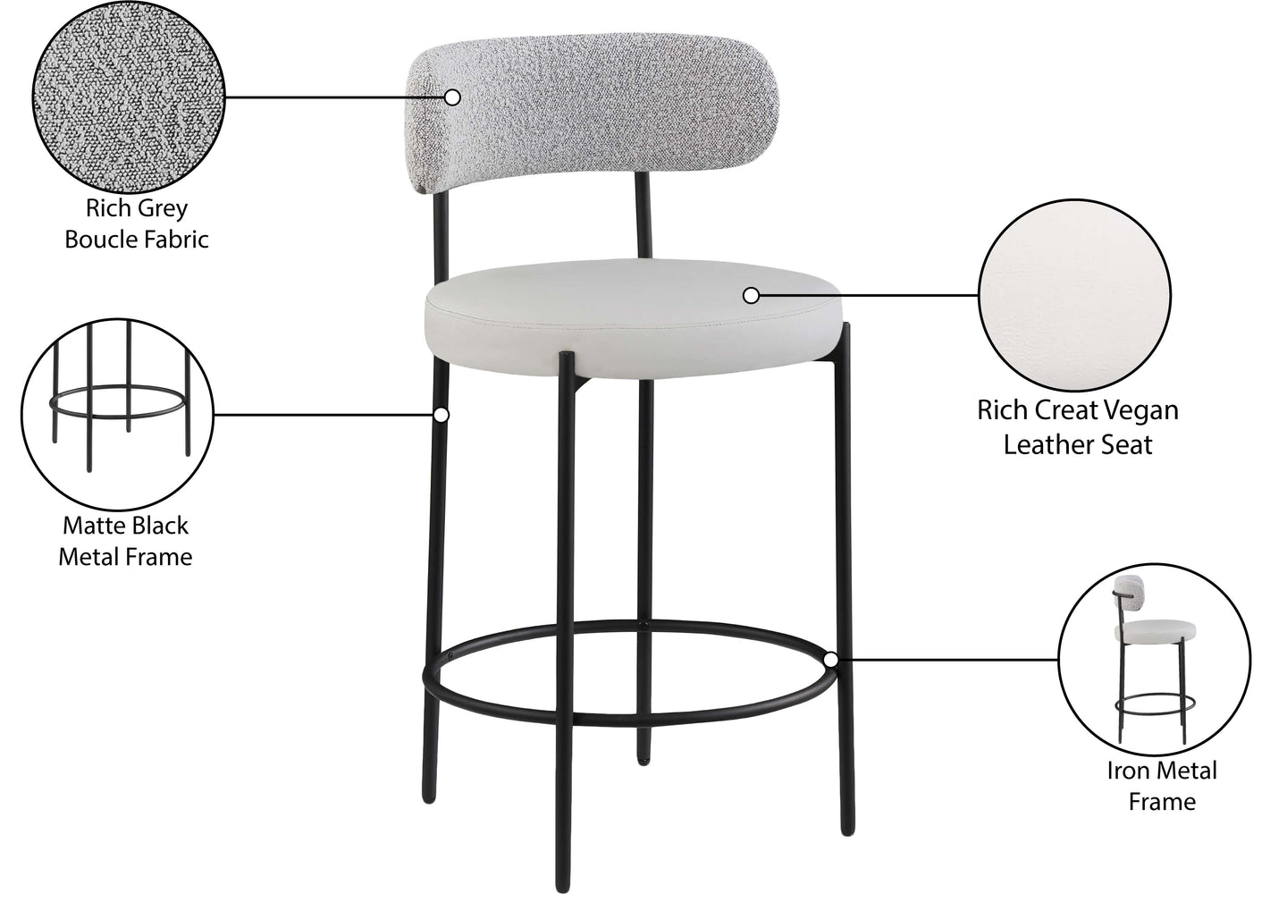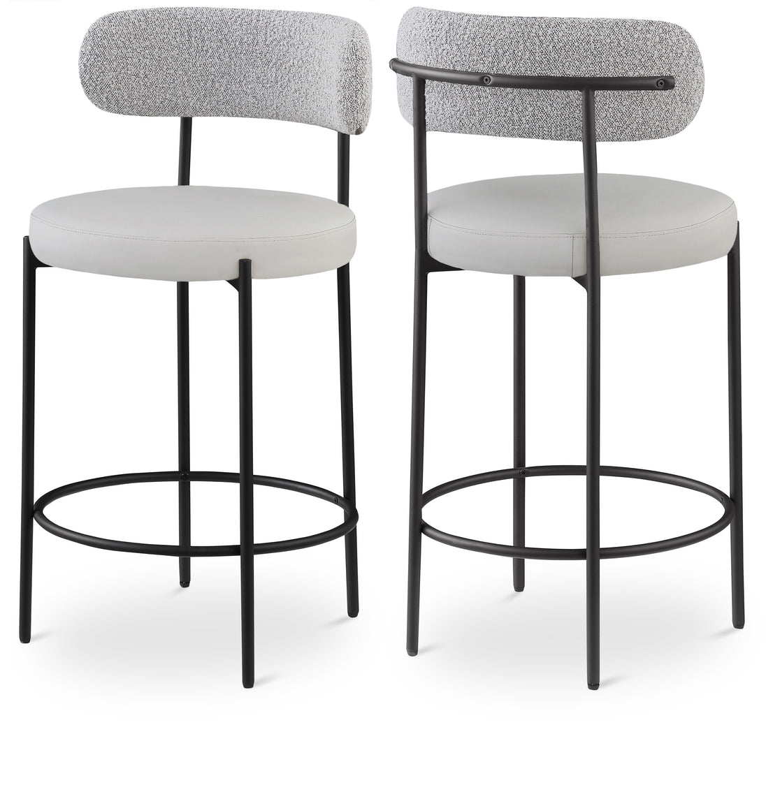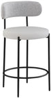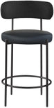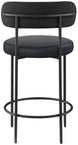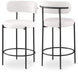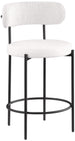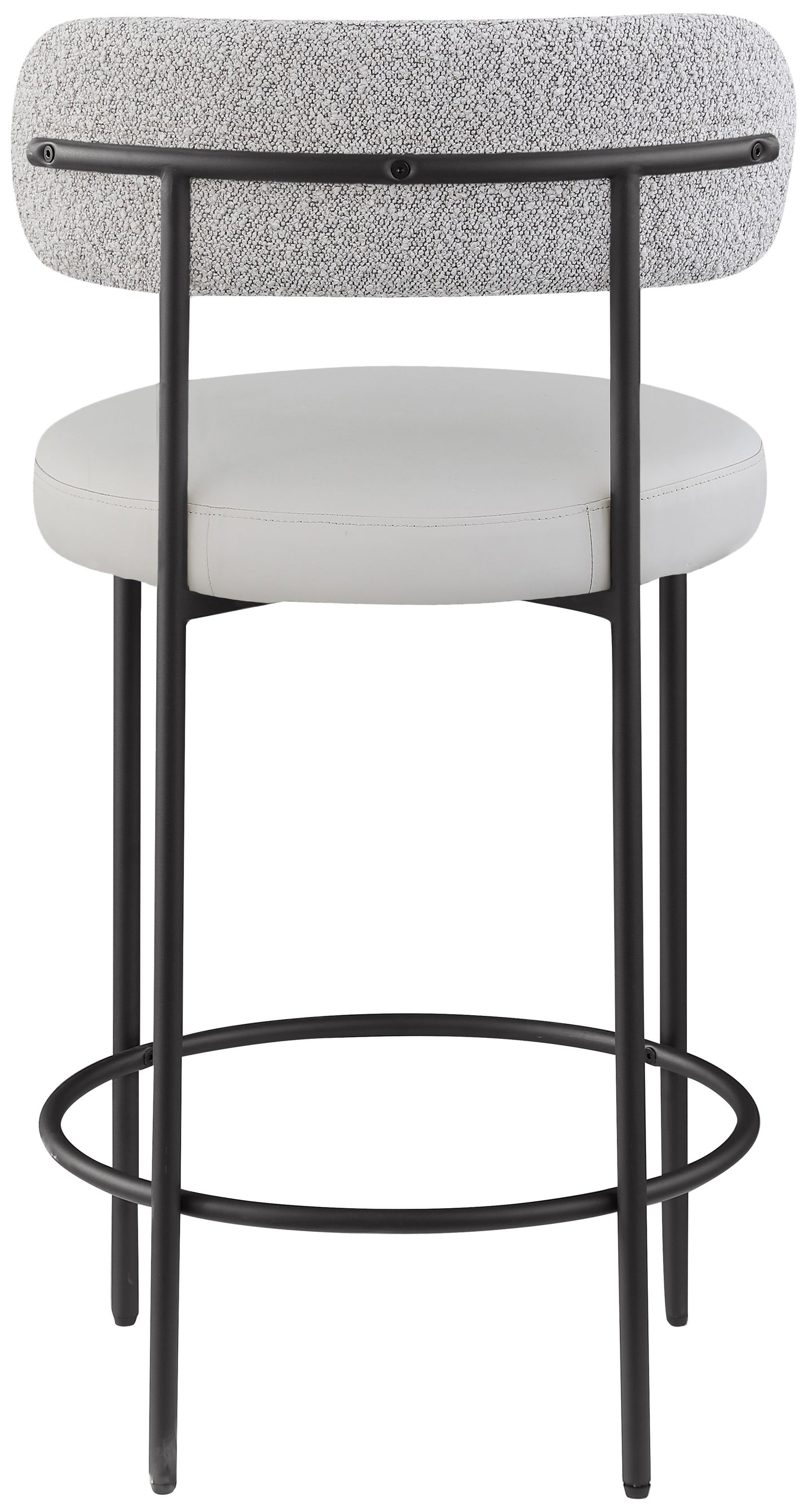 Make family, friends, and guests want to stay 'till closing time when they're seated on these Beacon vegan leather and boucle fabric bar stools/counter stools. These handsome stools are just the thing your kitchen counter or home bar is missing, with their ultra-modern design and beautiful look. The curved backs support the body while you sip a frosty cold one or nosh on some breakfast fare. A matte black metal frame gives the stools' design durability while the black vegan leather seat and boucle fabric back adds a touch of softness and comfort.
