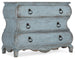 This Bombe-shaped Bachelors Chest in a lovely Skylark Blue finish with natural wood undertones is a decorator's dream come true. Crafted of Poplar and Hardwood Solids with Elm and Cedar Veneers, the chest has a cord clip on the back panel and a three-plug outlet with USB port, along with a nightlight with touch switch.