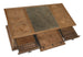 - Primary Materials: Pecky Hickory Veneers, Leather and Solid-Wood Edged Top