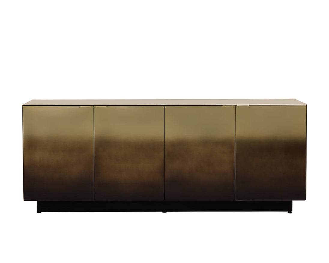 With an alluring ombre design, the Calvosa Sideboard will captivate in any space. Crafted from stainless steel with a dark bronze finish. Made in India. With refined craftsmanship, this design was brought to life by skilled local artisans. By nature, these materials develop unique imperfections such as fissures, markings and colour variations for a truly one-of-a-kind piece.