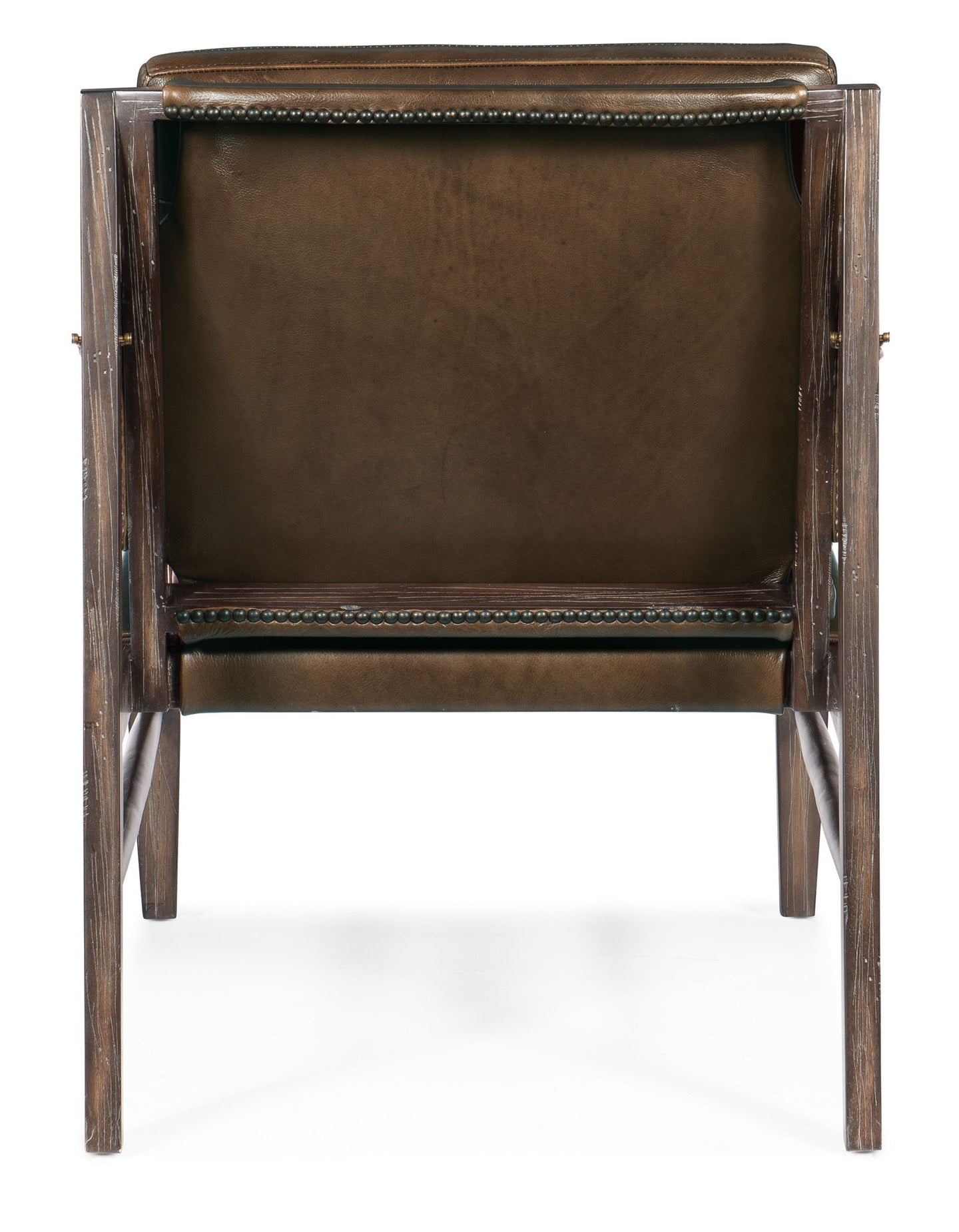 A vintage British Colonial vibe distinguishes the Sabi Sands Sling Chair, featuring a dark wood frame, leather sling arms and nailhead trim. The Sabi Sands is upholstered in the Legendary Taupe aniline top-grain leather.