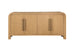 The Chandler Sideboard is crafted with solid wood and flat-cut oak veneers in a light oak finish. Its modern design boasts smooth, rounded edges and step-molding detailing. The four doors feature oversized antique brass handles, concealing adjustable shelves with media cord management. Finished in white oak with antique brass accents, it embraces natural wood grain variations.