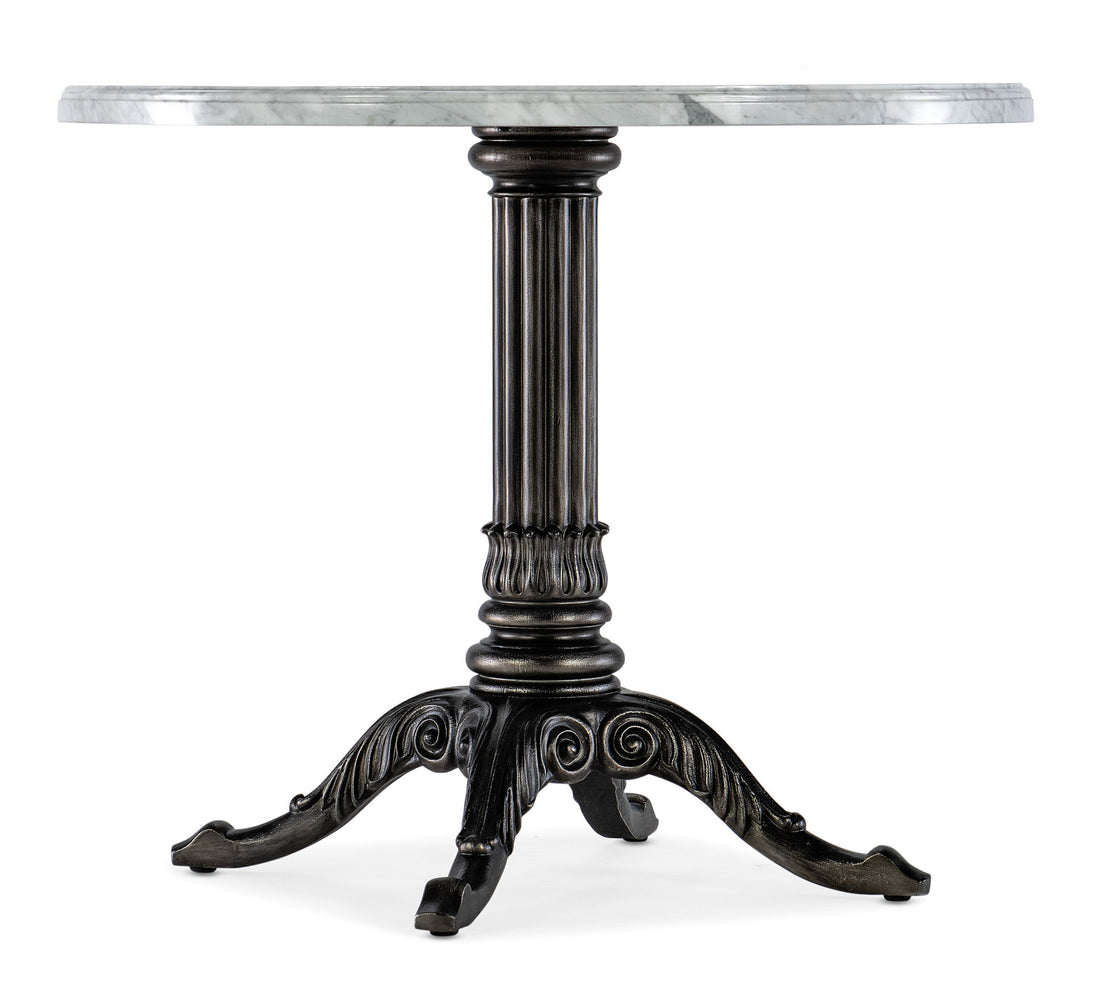 Inspired by timeless Paris bistro tables, the Charleston table is a classic design with a Veneered Carrara Stone top and a carved pedestal base that takes its’ inspiration from the decorative iron gates that adorn the stately properties in Charleston. Will accommodate up to 4 with coordinating chairs.