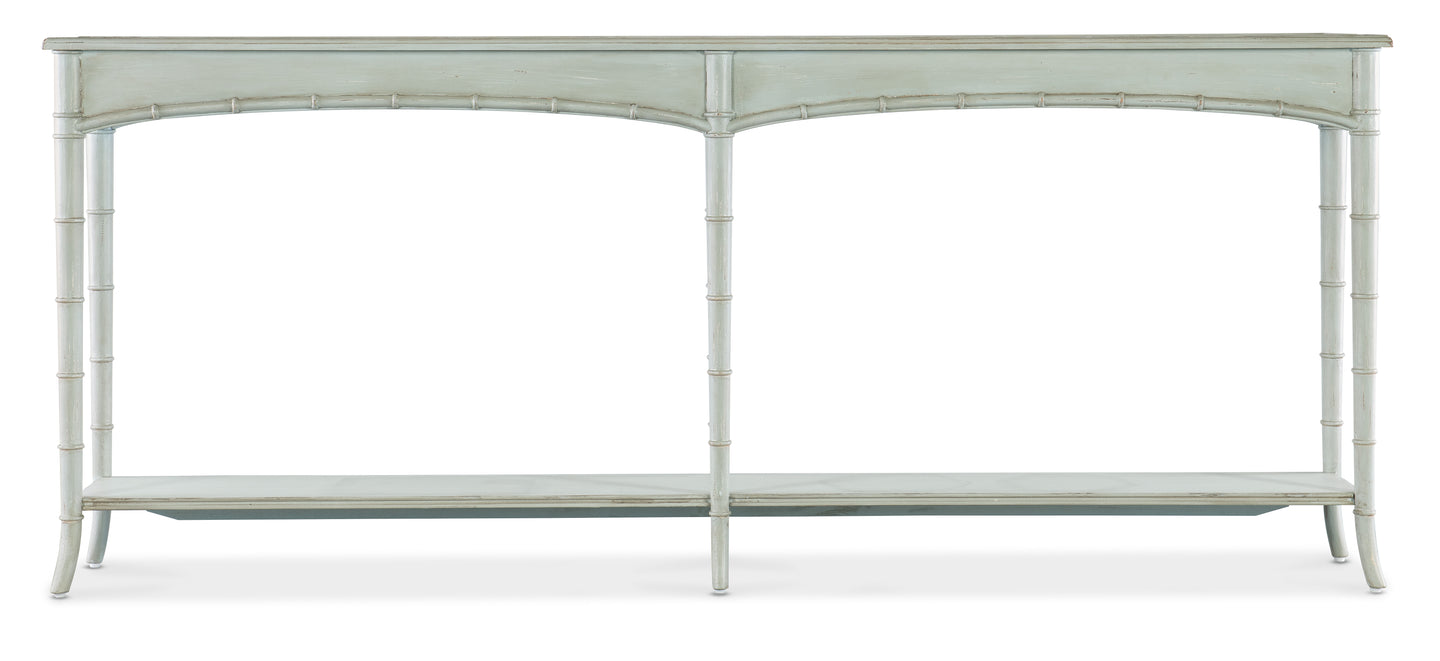Capturing the vintage charm of the coastal South and the tropical craftsmanship of the West Indies, the Charleston Console Table is crafted of Maple Veneers and Resin with bamboo-motif accents and slender bamboo-style legs. Featuring one fixed shelf, it is finished in the charming Haint Blue, a soft blue color that can be found on the ceilings of porches and entryways, window shutters and doors of the South. The color is inspired by folklore brought to the American South more than 200 years to keep ‘haints’ or spirits, which could not cross water, from entering the home or dwelling.
