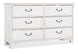 Inspired by the tropical craftsmanship of the West Indies and the cane accents of the classic British and Dutch Colonial design periods, the Charleston Six-Drawer Dresser has bamboo-motif trim and six drawers with self-closing drawer guides. The wood chest is finished in White Heron, a softer interpretation of the classic Southern limestone white with a slightly brighter sheen, delivering an heirloom-quality finish. The top left drawer has a removable felt liner and jewelry tray, and the top right drawer has a removable felt liner. The drawer interiors are painted gray, and both bottom drawers are cedar lined. Accented by antique pewter-colored decorative bail pulls.