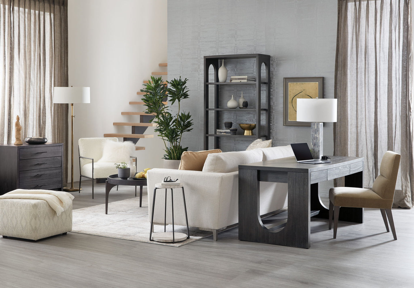 With a global and minimalist aesthetic, the Commerce & Market Lateral File is crafted of Mindi Veneers with a black finish allowing the wood grain to show through. Metal bar pulls in a charcoal finish give a clean, monochromatic feel. Features two utility drawers and one file drawer with Pendaflex filing system.