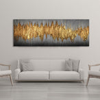 Our Gold Abstract artwork adds a touch of elegance and intrigue, much like a stunning work of literature or fashion. And with its unique combination of gold and gray tones, it brings a sense of liveliness to any room, much like the ebb and flow of an electrocardiogram.