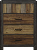 Specifications: Made of embossed faux-wood veneer, wood and engineered wood. Multi-tone wire brushed finishes. 4 dovetail drawers with metal on metal center glides. Flat black tone edge pulls and bar pulls. No assembly required. Prop 65 Information.
