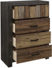 Product Description: The distinct styling of the Cooper Collection will be the perfect fit for the modern industrial look you wish to achieve in your bedroom. Utilizing embossed faux-wood veneer, the unique 4-tone style, of the chest, accentuates highs and lows of dark and light acacia as well as the rich tones of dark ebony and rustic mahogany faux grains. Dark metal hardware provides complementing contrast to the drawer fronts.