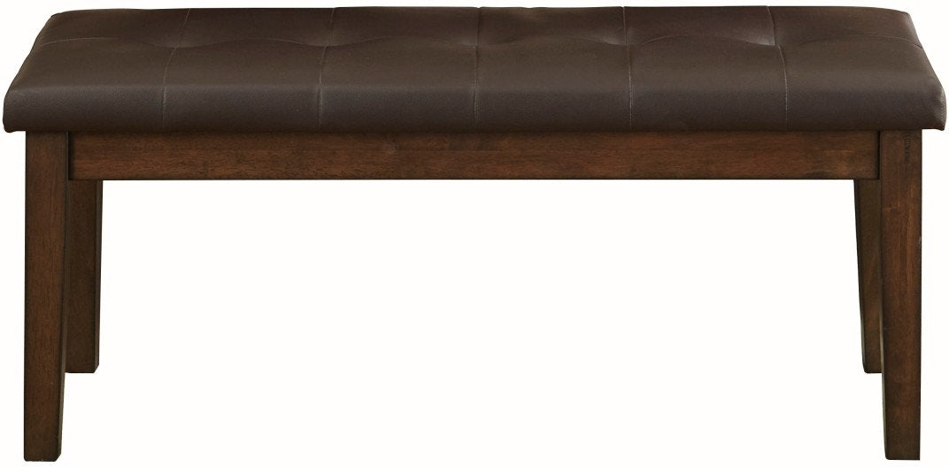 Product Description: Styled for the transitional home, the Wieland Collection creates a classic profile for your casual dining area. The bench's light rustic brown finish and brown faux leather stitch-tufted seat creates a look that is stylistically perfect for your environment.