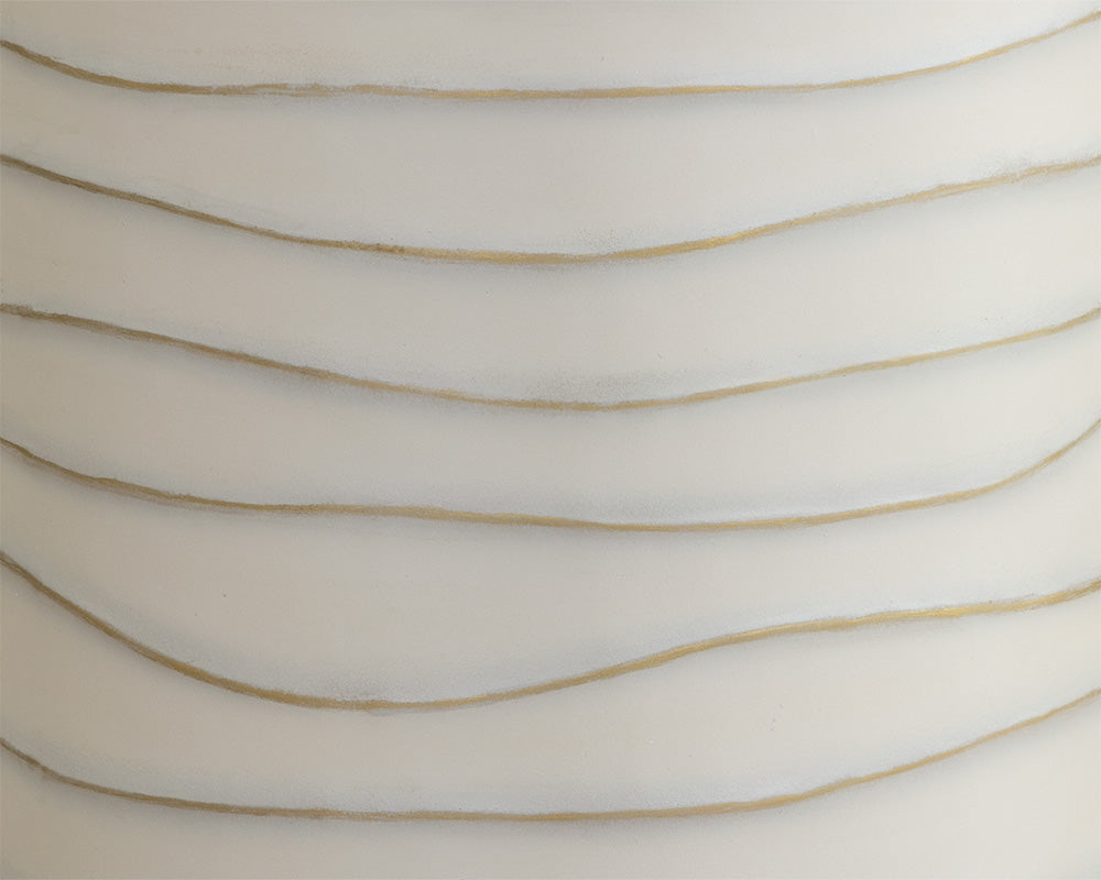 This round side table will enhance any environment. Crafted from concrete, this piece features hand sculpted ridges with a painted brass and gold finish. Suitable for indoor and covered outdoor spaces. Crafted from a natural concrete mix, each piece will look different. Variations in colour, texture, imperfections, surface scratches and non-structural hairline cracks are considered inherent and valued qualities of the material. Suitable for indoor and covered outdoor spaces.